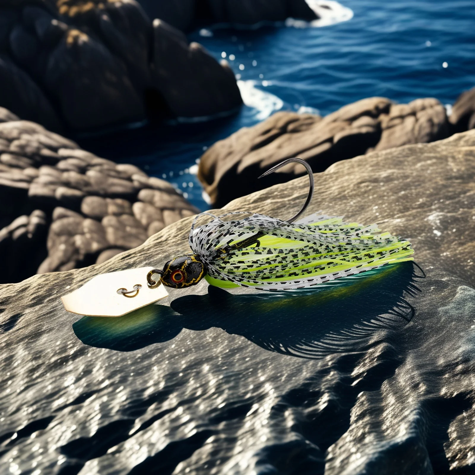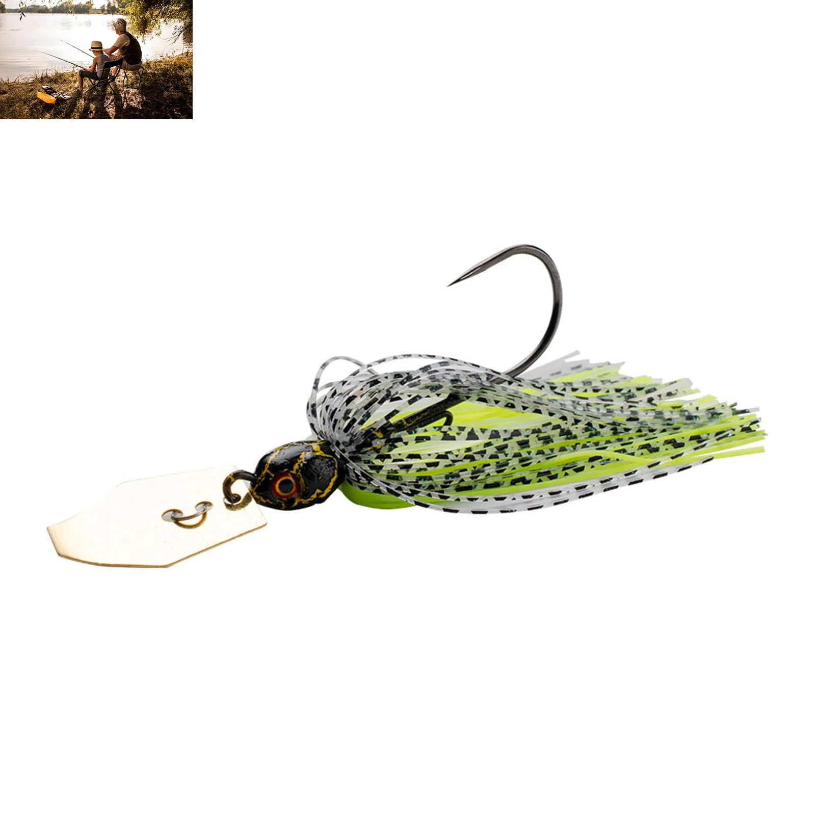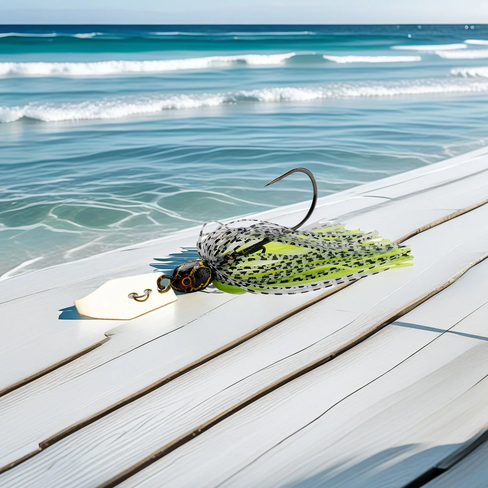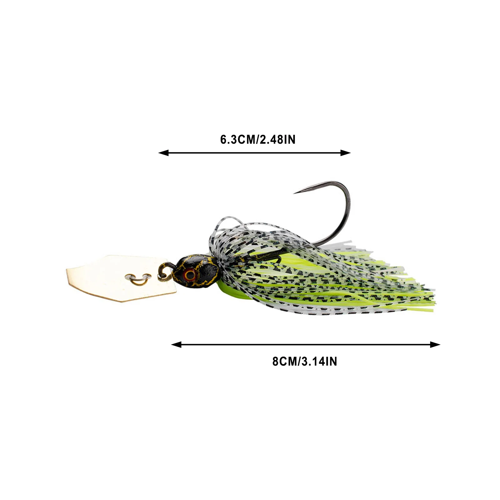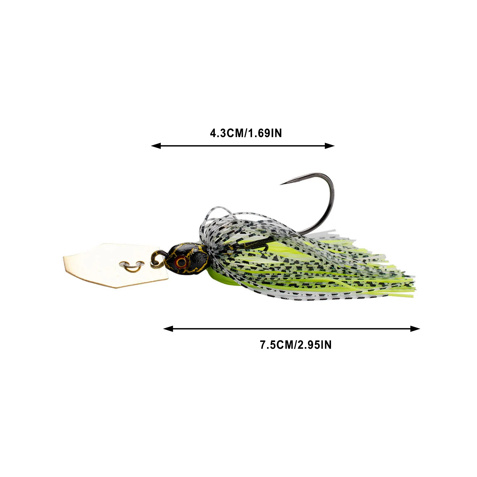Diseño multifuncional: Equipado con una cola de plumas y un anzuelo de púas, este spinnerbait ofrece versatilidad para diferentes entornos y técnicas de pesca.