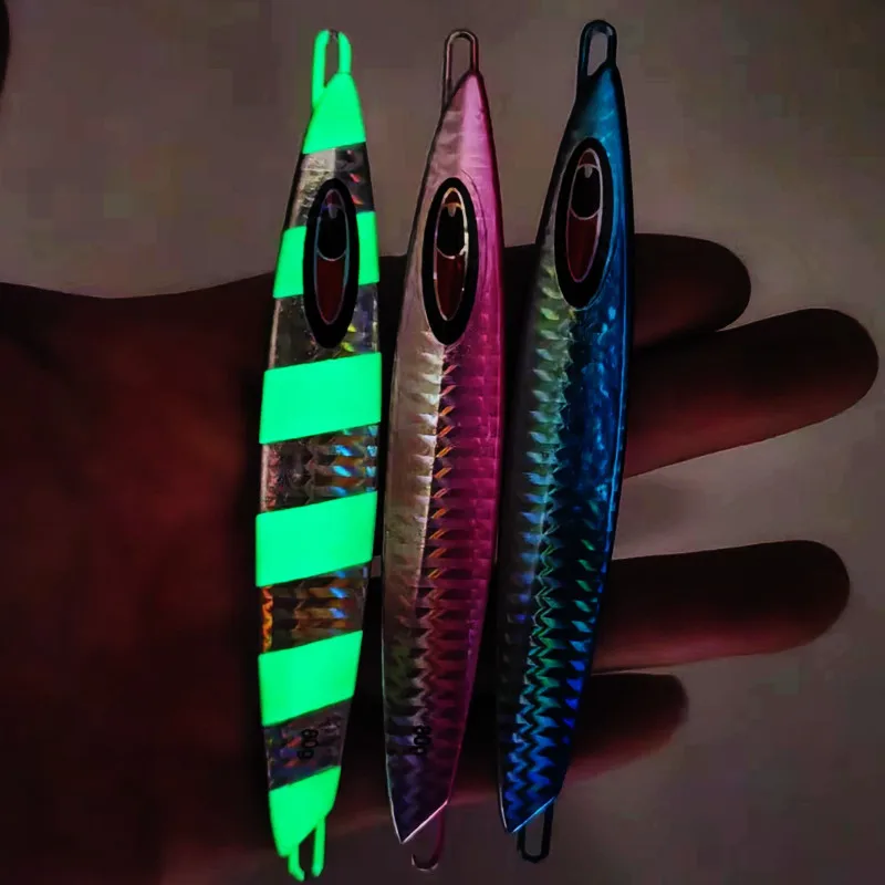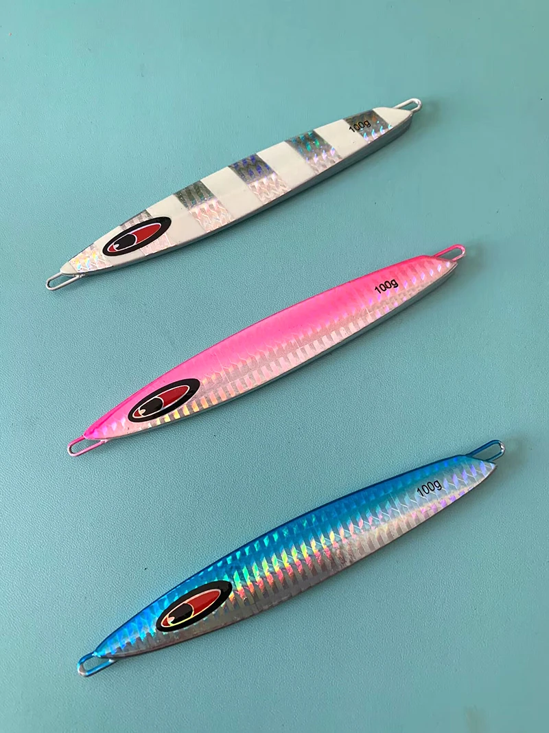 Señuelo de Pesca de Metal, anzuelo de fundición larga, Jigging lento, hundimiento, Leurre, 80g, 100g