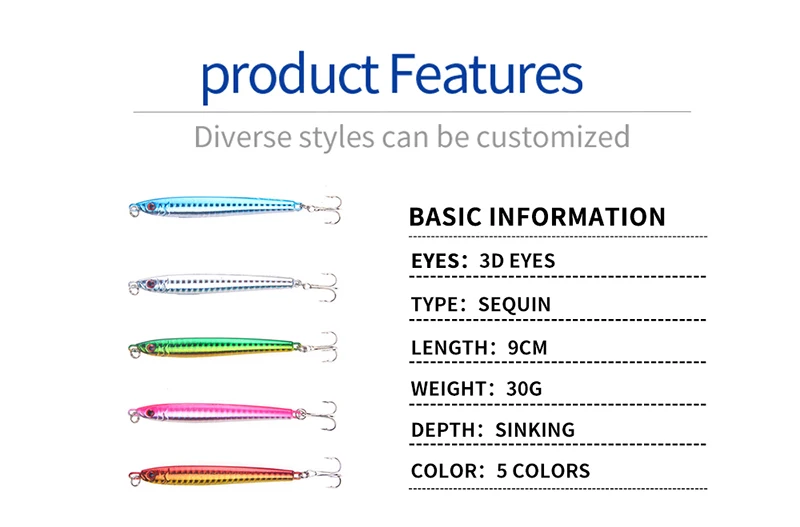 Metal Bait Sea Fresh Fishing Lure Sequins 30g 9cm Iron Plate Artificial hard bait laser Spinner Bait Jigging Fishing Tackle