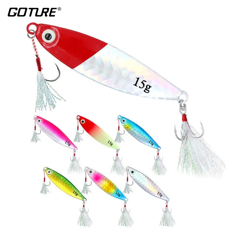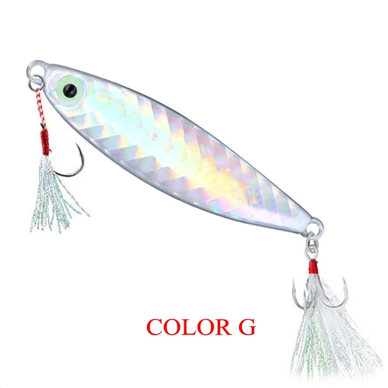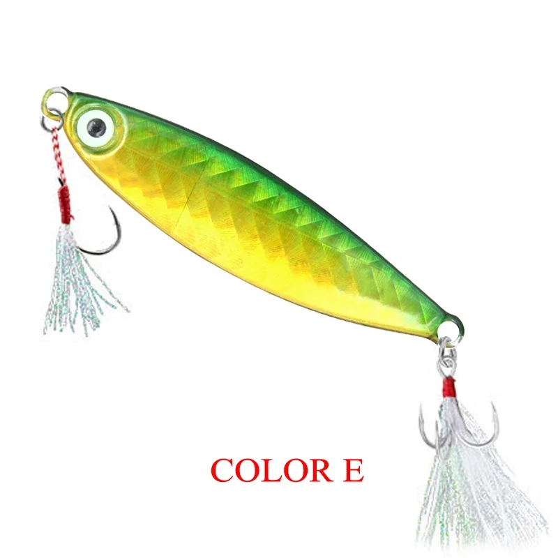 1 Uds señuelo de pesca de Metal 7g 10g 15g 20g 30g cebo de pesca con configuración de doble anzuelo señuelo de juego de mar agua dulce y agua salada