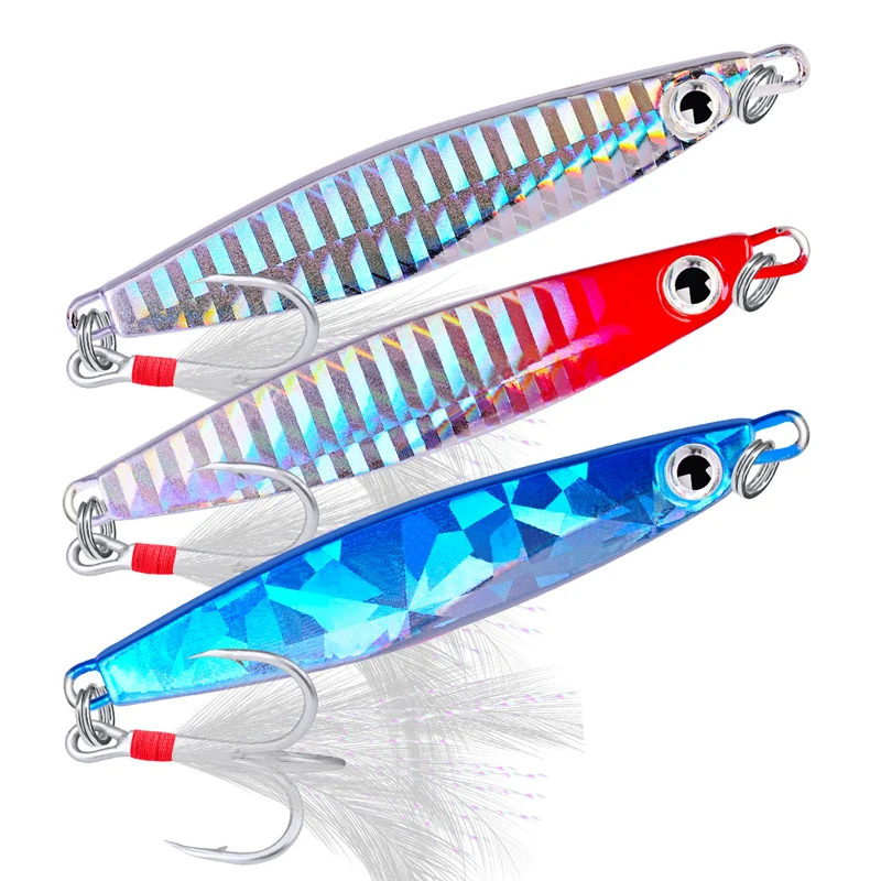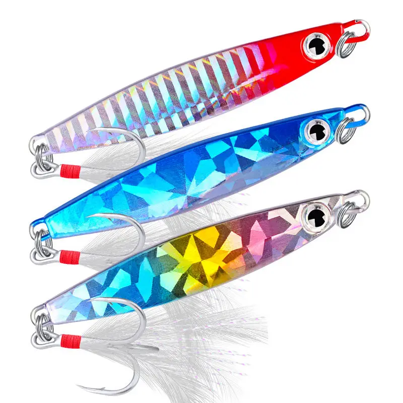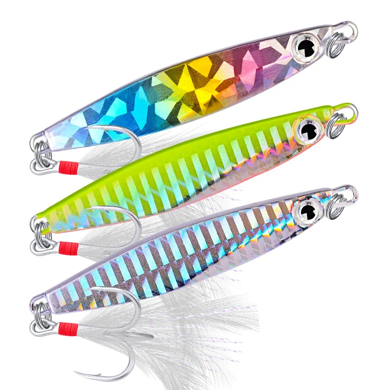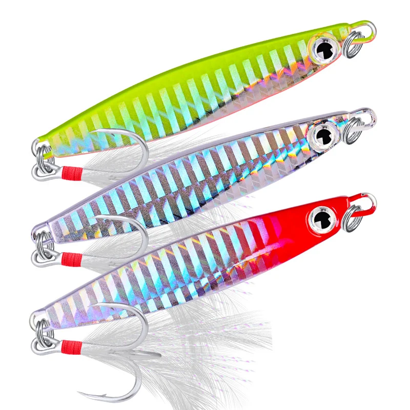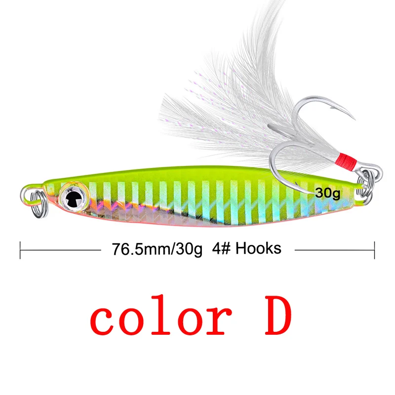 Señuelo de pesca de Metal, cuchara giratoria de lentejuelas con pluma, cebo duro para mar, lago, herramienta Wobblers 30, 10g, 21g, 30g, 1 unidad