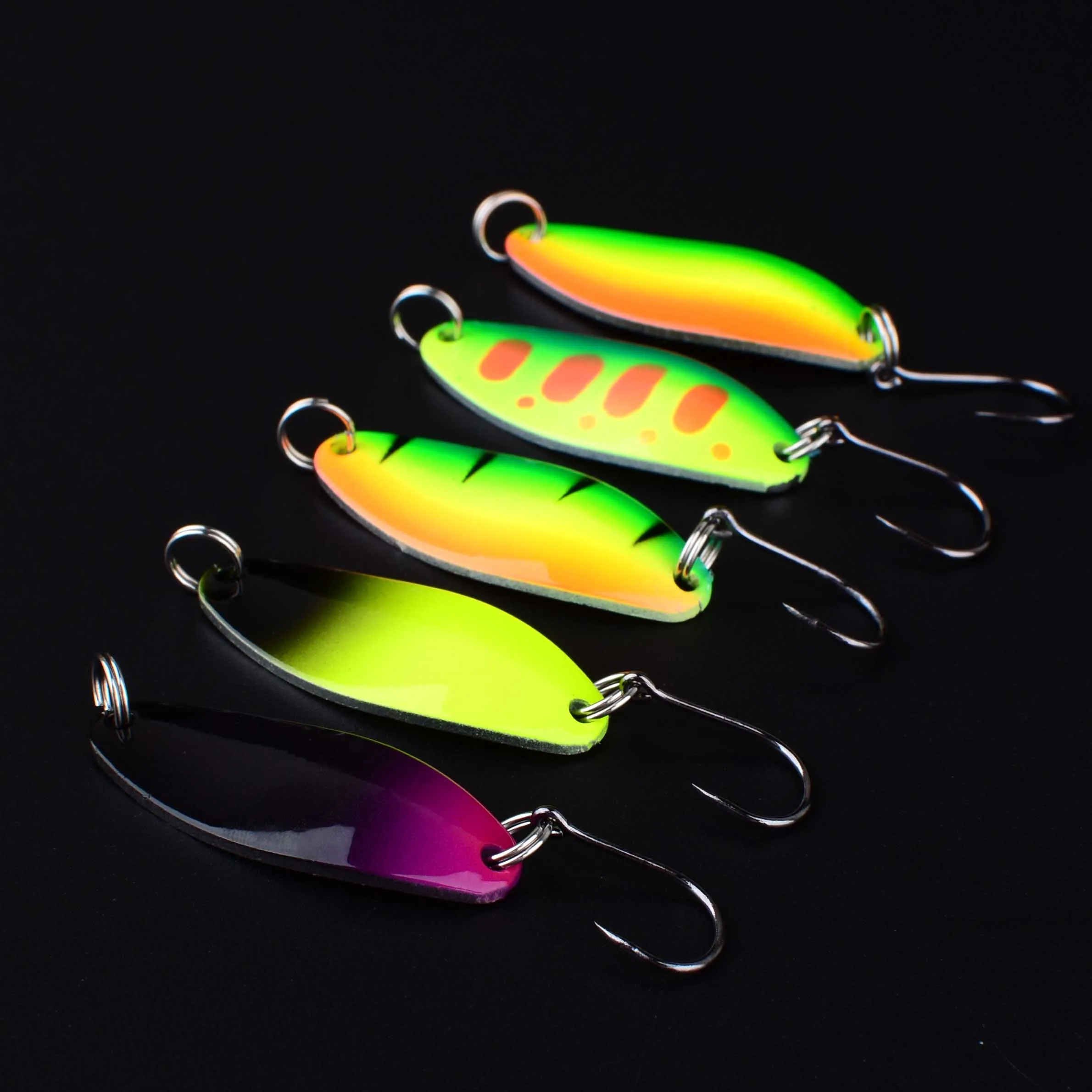 Señuelo de pesca de Metal con cuchara para trucha, cebo duro con un solo gancho, perca para trucha, salmón, 5 uds.