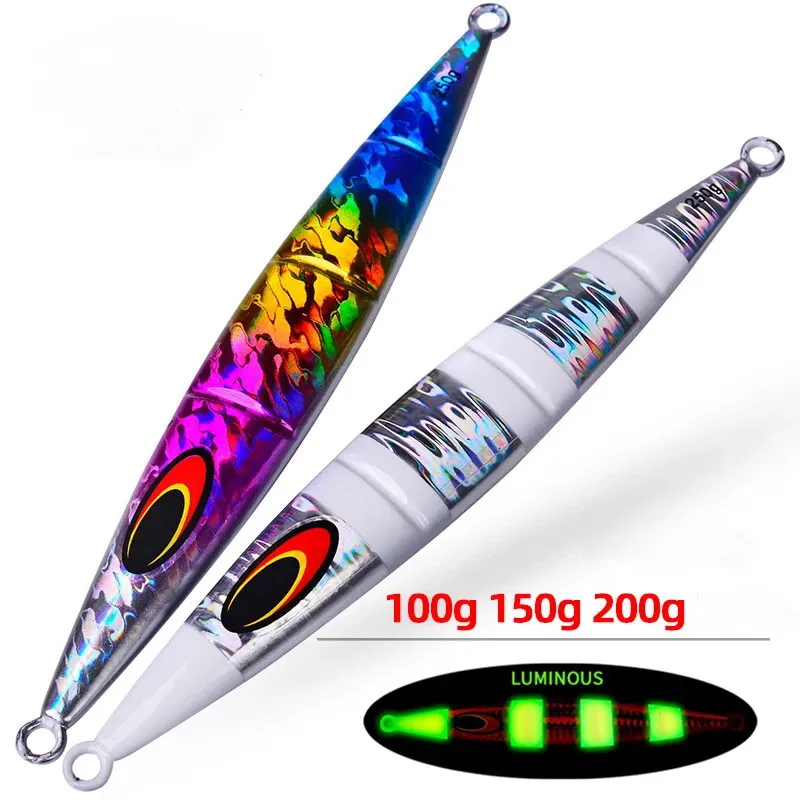 Señuelo de pesca de Metal fundido largo, anzuelo deslizante de sardina para barco de aguas profundas, 100g, 150g, 200g