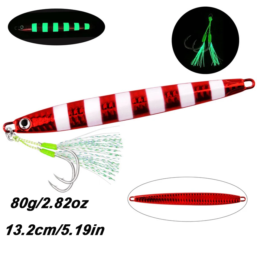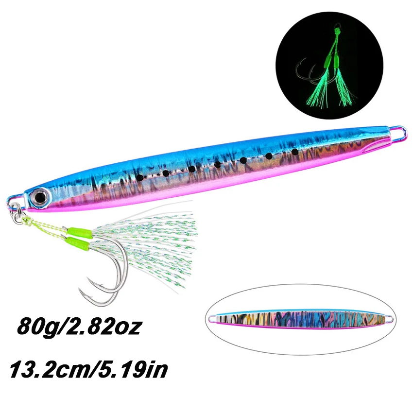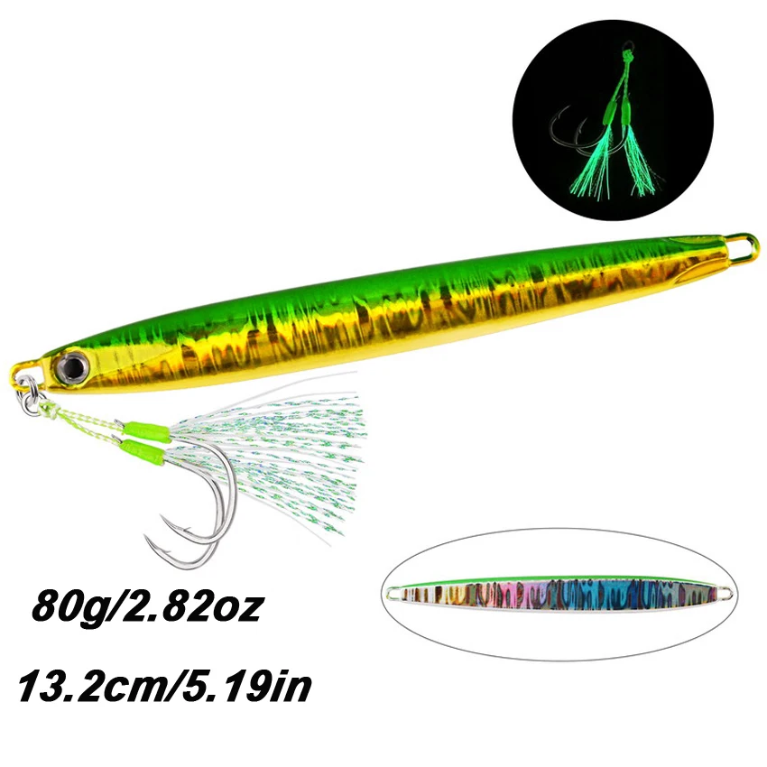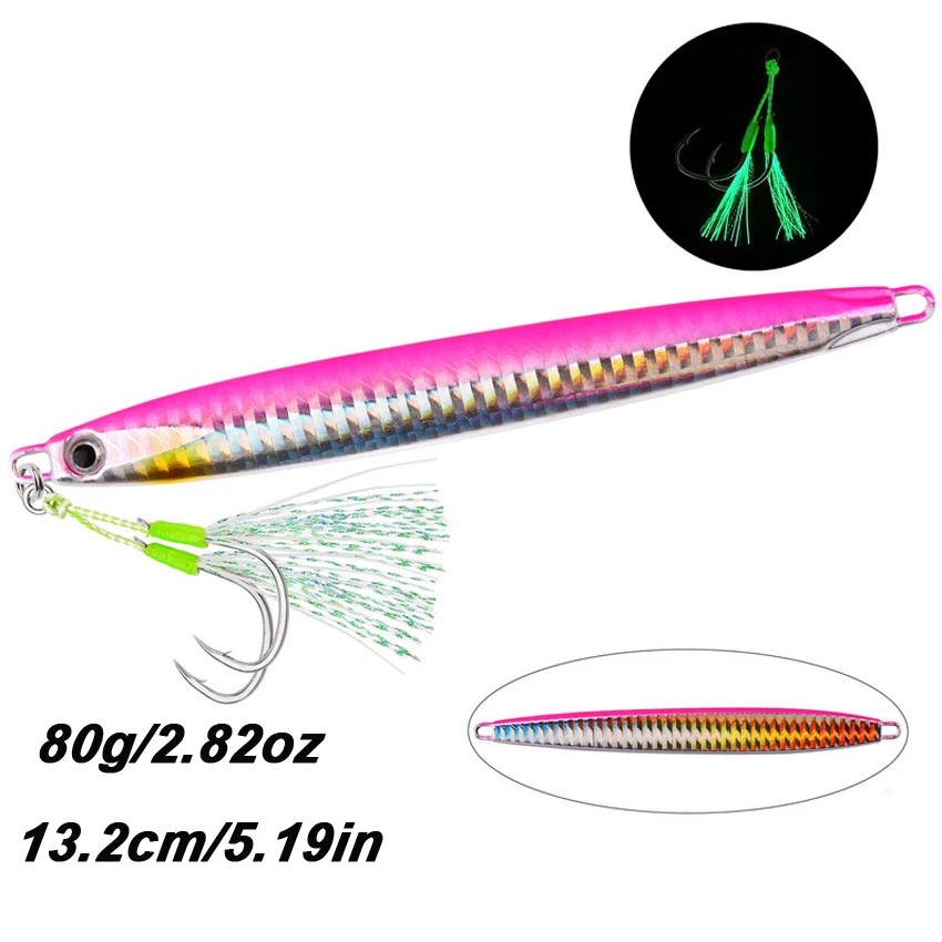 Señuelo de pesca de Metal largo, Jigging de fundición lenta, 80g, 13cm, cebo de Metal Artificial, señuelo de pesca de mar, 1 Uds.