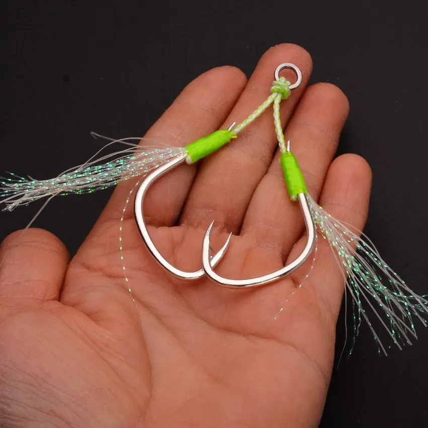 ZYZ 1 pieza de aparejos de bagre con gancho en J individual rojo y anzuelos triples, señuelo flotante, aparejos de cebo vivo, Ideal para anzuelos de cuerda de bagre de agua dulce