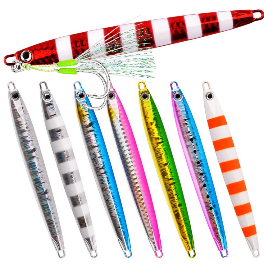Señuelo de pesca con plantilla de Metal largo y lento, 5 piezas, 17g, 21g, 28g, 40g, 60g, señuelos de Jigging fundidos, cebo Artificial para peces de orilla, pesca de lubina