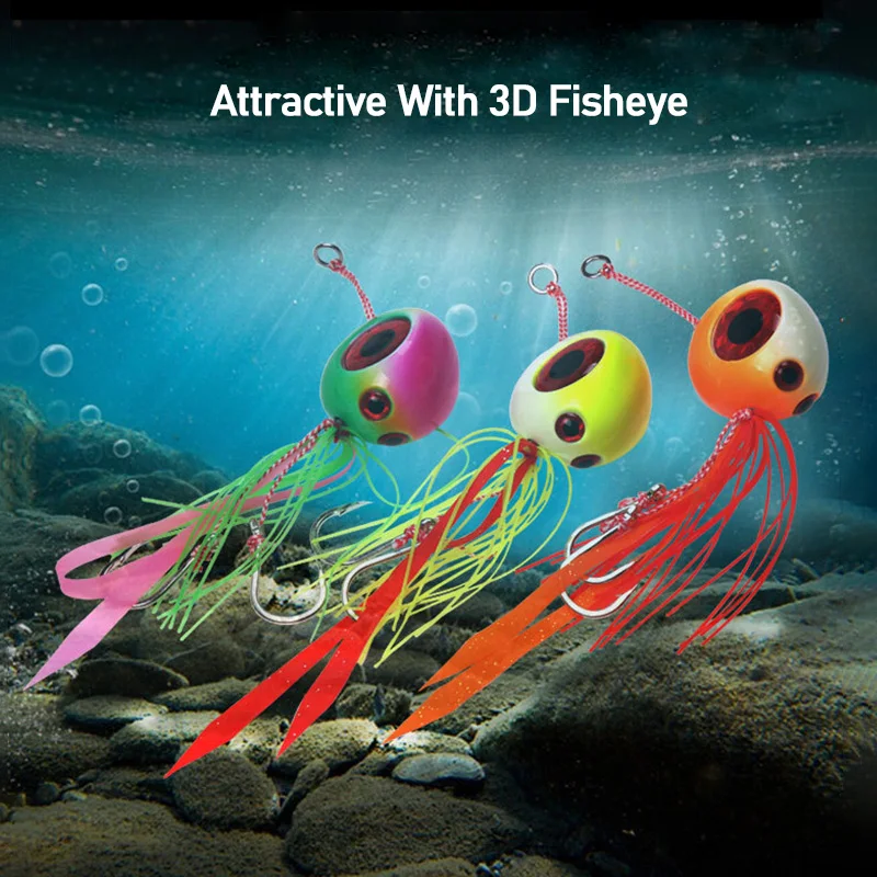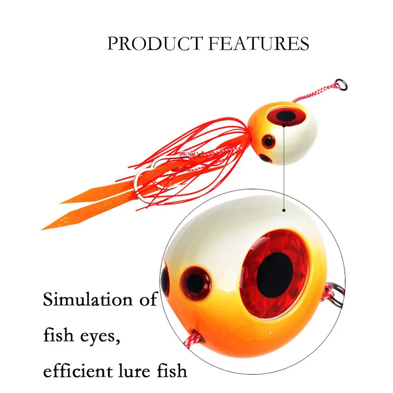 Aspecto atractivo: Los vívidos ojos de pez 3D y la coloración del recubrimiento láser son realistas y reflectantes, lo que permite a los depredadores detectar el señuelo de pesca rápidamente. El patrón de la cabeza del Jigger es brillante y vívido, lo que puede atraer a los peces hambrientos para enganchar en cualquier agua. El diseño del anzuelo de asistencia puede aumentar su tasa de pesca.
