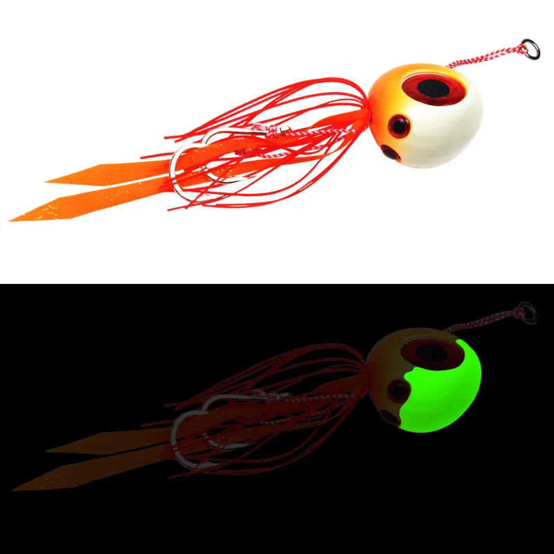 Efecto luminoso: Los jigs de agua salada con diseño fluorescente en la parte posterior brillarán en la oscuridad, ideales para aguas oscuras y condiciones de poca luz, y el acabado luminoso excita mejor a los depredadores visuales.