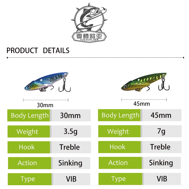 Señuelo de pesca de Metal que se hunde VIB, 3,5g, 7g, cuchara de vibración, cebos duros Crankbait Wobbler Swimbait, aparejos de cicla VIB, 1 unidad