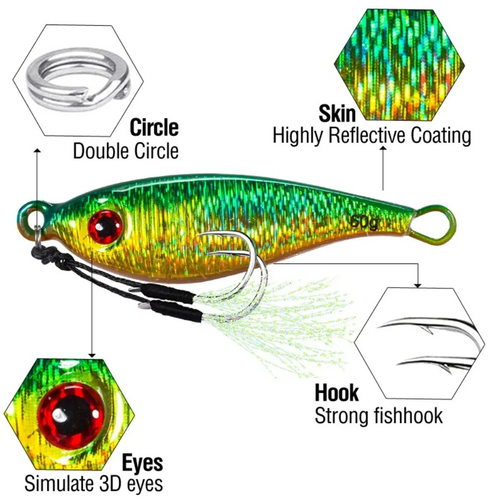 Cantidad: 5 uds 1.Para la pesca costera, la distancia de lanzamiento es muy importante.La forma compacta del cuerpo le ayuda a brindarle la mejor distancia de lanzamiento.