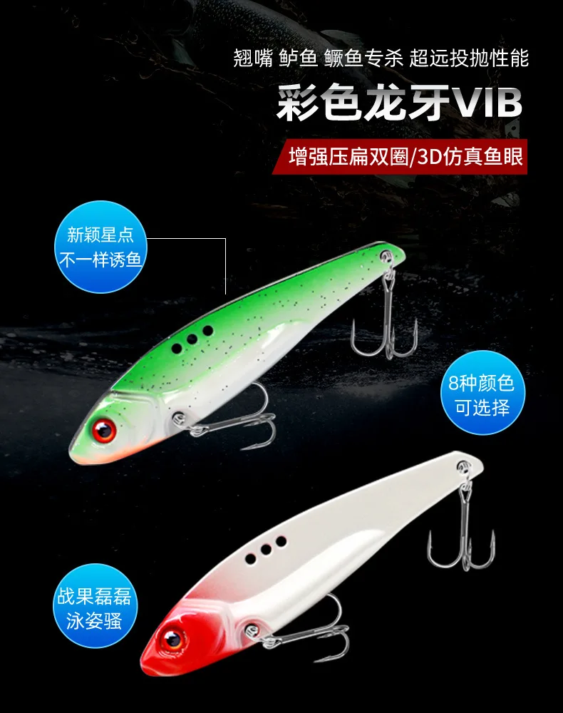 Señuelo de pesca de Metal VIB, 1 piezas, 7g, 10g, 12g, 14g, vibración, ojos 3D, señuelos de manivela, cebo duro para hundimiento en invierno, aparejos de pesca Swimbait