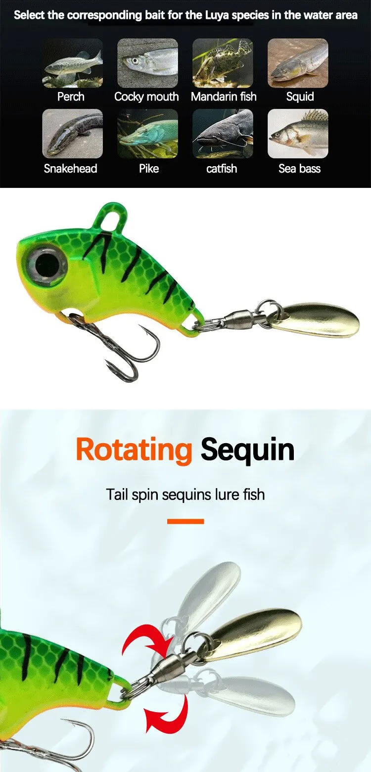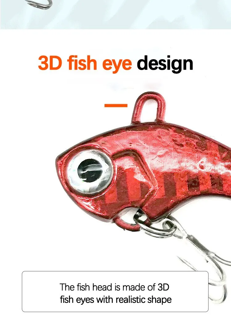 Este señuelo de pesca VIB pertenece al tipo de hundimiento, que puede funcionar en todas las capas de agua. Con su diseño de ojo de pez 3D, efecto luminoso, anzuelos triples reforzados y tecnología de pintura de alta calidad, 6 colores, tiene un buen efecto de atraer peces y usar la experiencia.