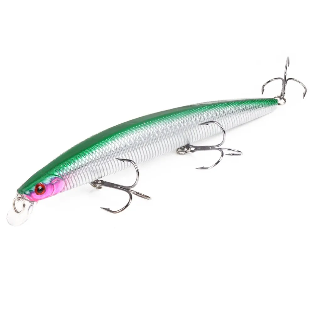 Type: fishing lure Material: ABS+metal Color: as the pictures show Lure Length: 180mm Diving Depth: 0.5-2M Hooks: Equipped with pcs Anti-corrosion Hooks Eyes: 3D Fish Eyes Rings:Three Colors:10Colors Package Includes:1x fishing lure Features: 1. The bait body adopts advanced materials, not only has a high impact strength, but also does not produce harmful substances to the environment. 2. The bait is designed to have the best balance so that the bait can swim at the slowest possible retrieval speed. 3.The baits have lifelike painting and vivid 3D eyes ,they make the bait looks like real fish swimming in the water during fishing. 4.Colorful body: Simulation design, more attractive to fish. 5.Hooks: Anti-corrosion, stronger power, durable, freshwater seawater universal. 6.Metal Balls: Stainless steel balls inside, to keep balance of the fishing Lure, for the furthest distance casting. 7.Stronger Bicyclic Rings: Strengthen the double circle increased resistance to pull. 8.Simulation Fish Skin: The design of simulation fish skin make it more attractive to big fish. 9.Unlike popular cost-saving bonding done by popular companies. Bearking utilizes a detailed, time intensive process. 10.Edge finishing and precision deburring process reduces the lures rough mated area to smooth surface. 11.To test the integrity of the adhesion, lures are water experiment, immersed into hot water exceeding 70 degrees for around 20 seconds. Tips: 1.Due to the light and monitors effect, colors may have lightly difference. 2.Please allow slightly size errors due to manual measurement. Thank you for your understanding!