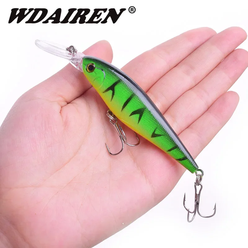 1 Uds. Señuelo de pesca Minnow 11cm 10g Labios largos Buceo Trolling Wobblers Crankbait de plástico cebo duro Artificial para lubina carpa Lucio