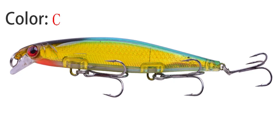 Señuelos de pesca de Minnow Wobblers de plástico, 11cm, 13,5g, cebo duro, anzuelo triple Artificial, aparejos para lubina, carpa, Lucio, Crankbait, 1 Uds.
