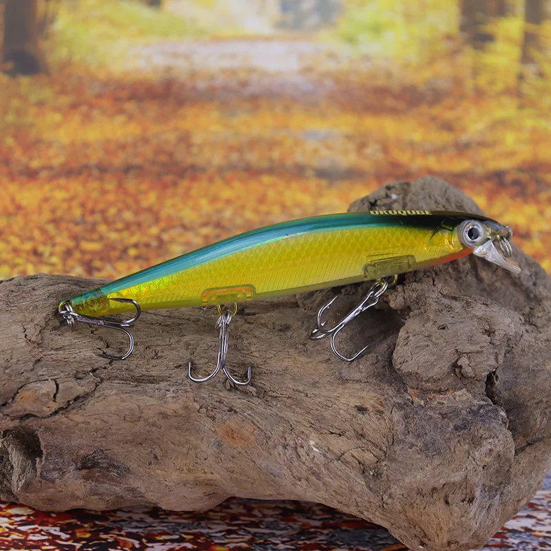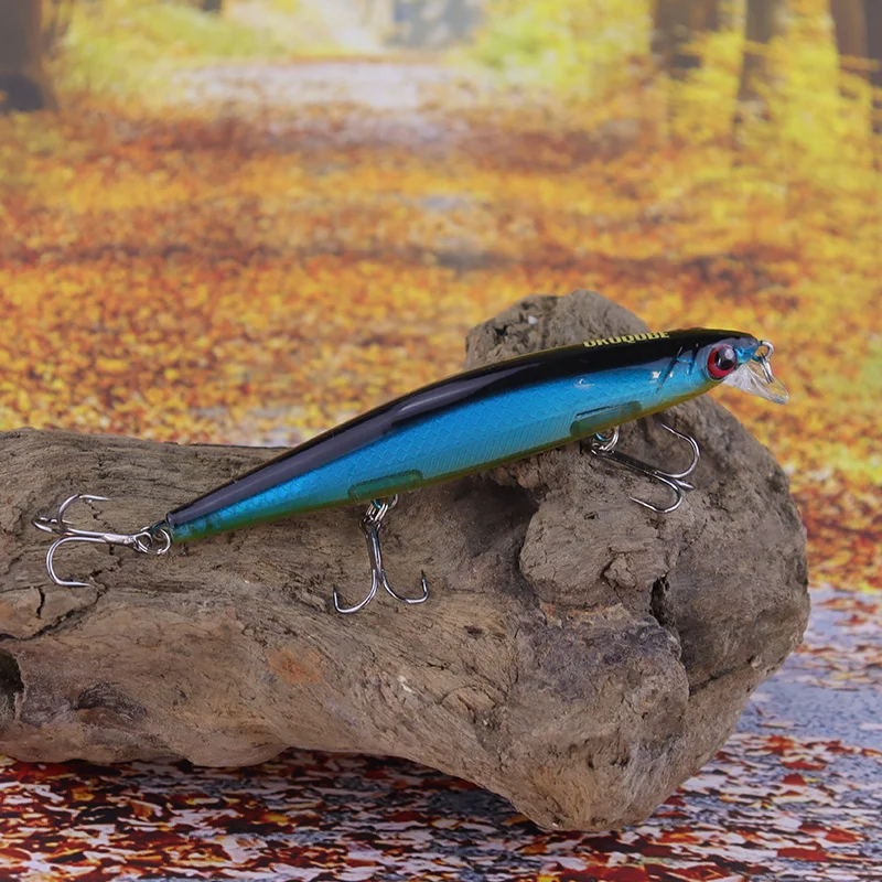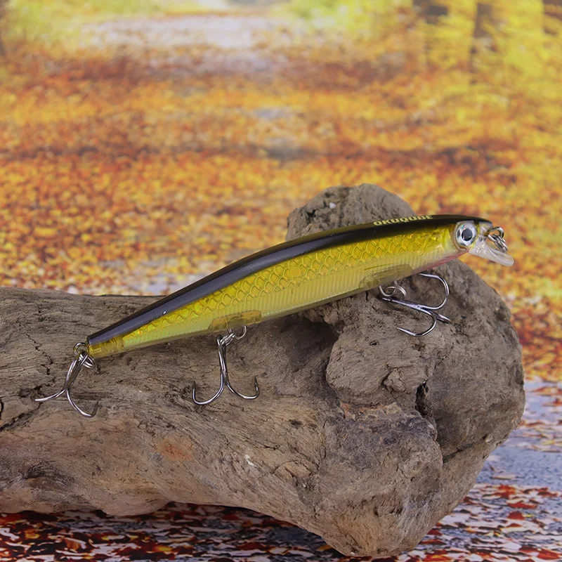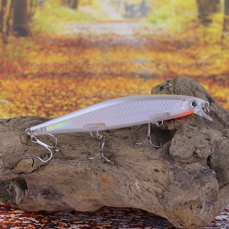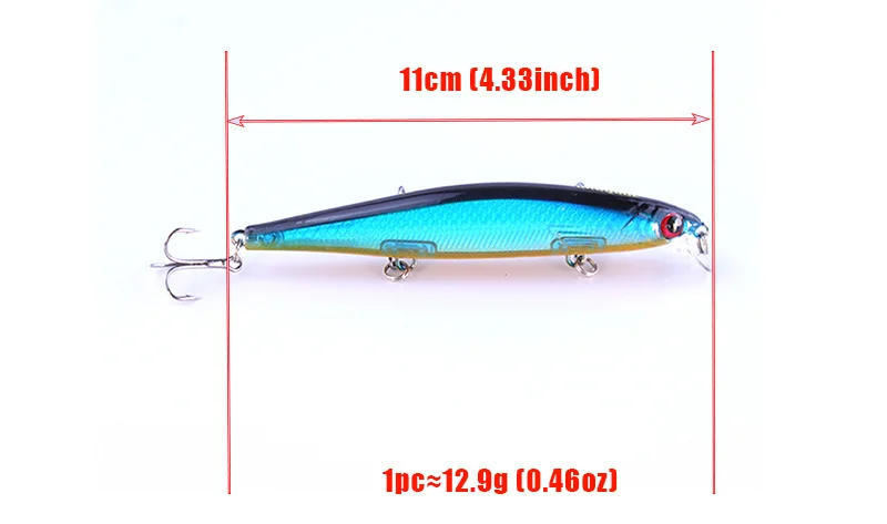 Señuelo de pesca Minnow de 12,9g y 11cm, anzuelos agudos afilados con ojos 3D con púas, cebos de pesca biónicos realistas para pescar trucha lubina