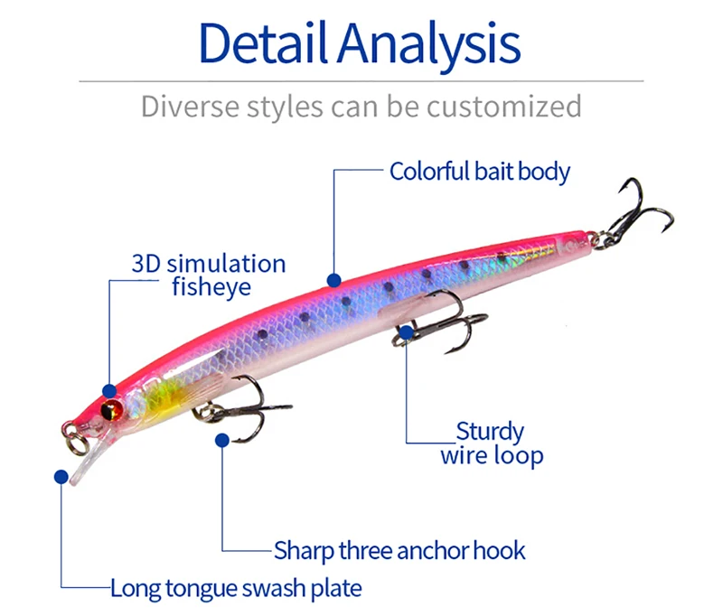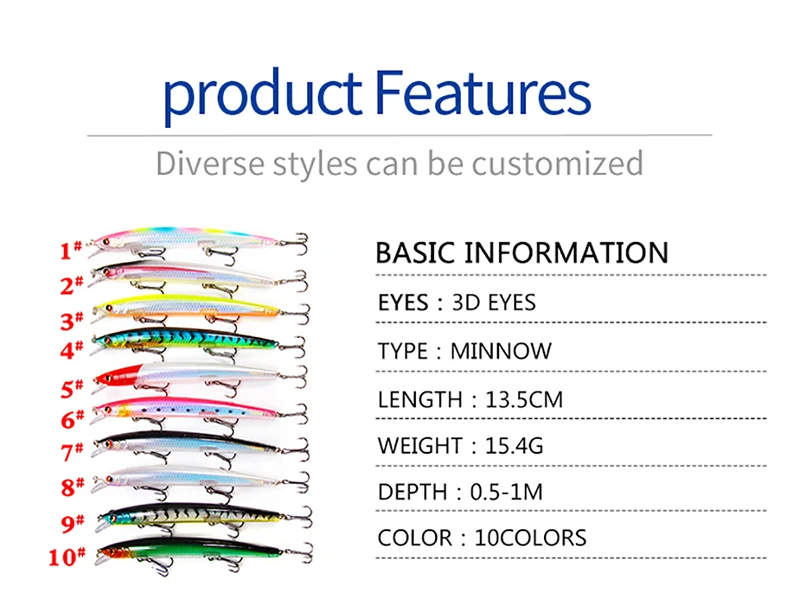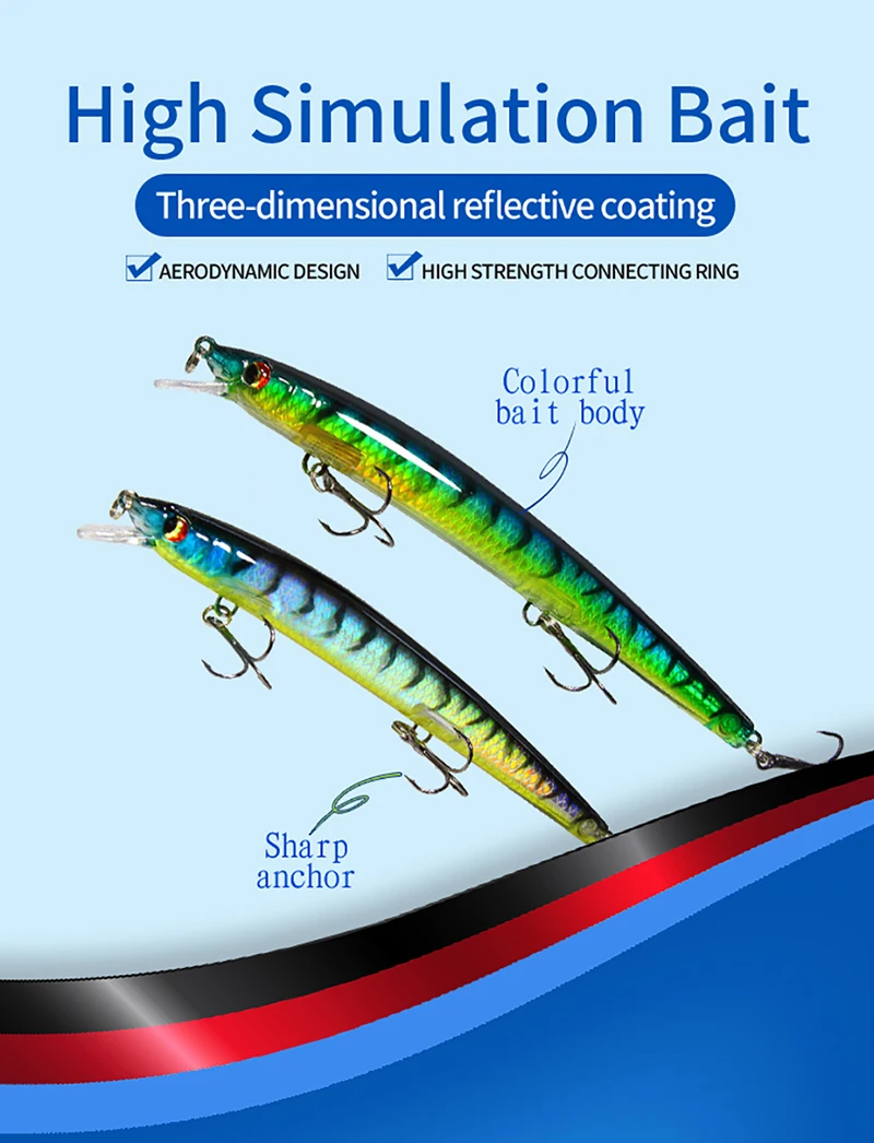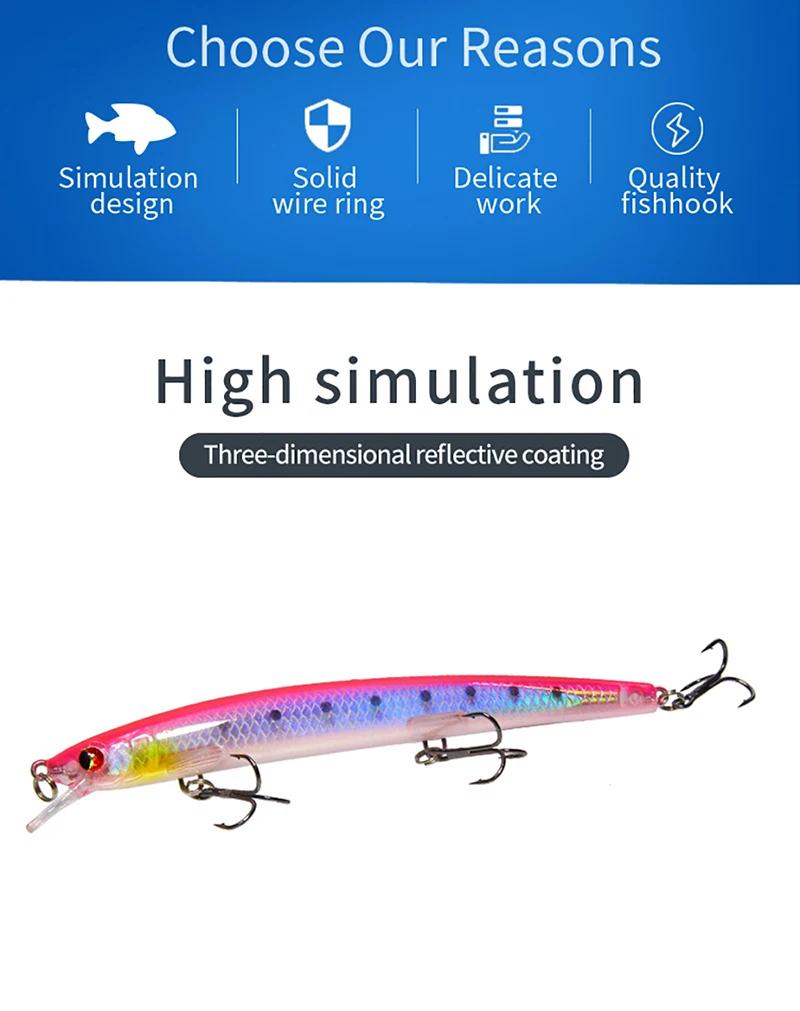 ● Hechas de material plástico ABS, resistente y resistente, antigolpes, las bolas de acero internas han sido probadas con instrumentos de precisión para garantizar al máximo el estilo de natación de cada cebo.