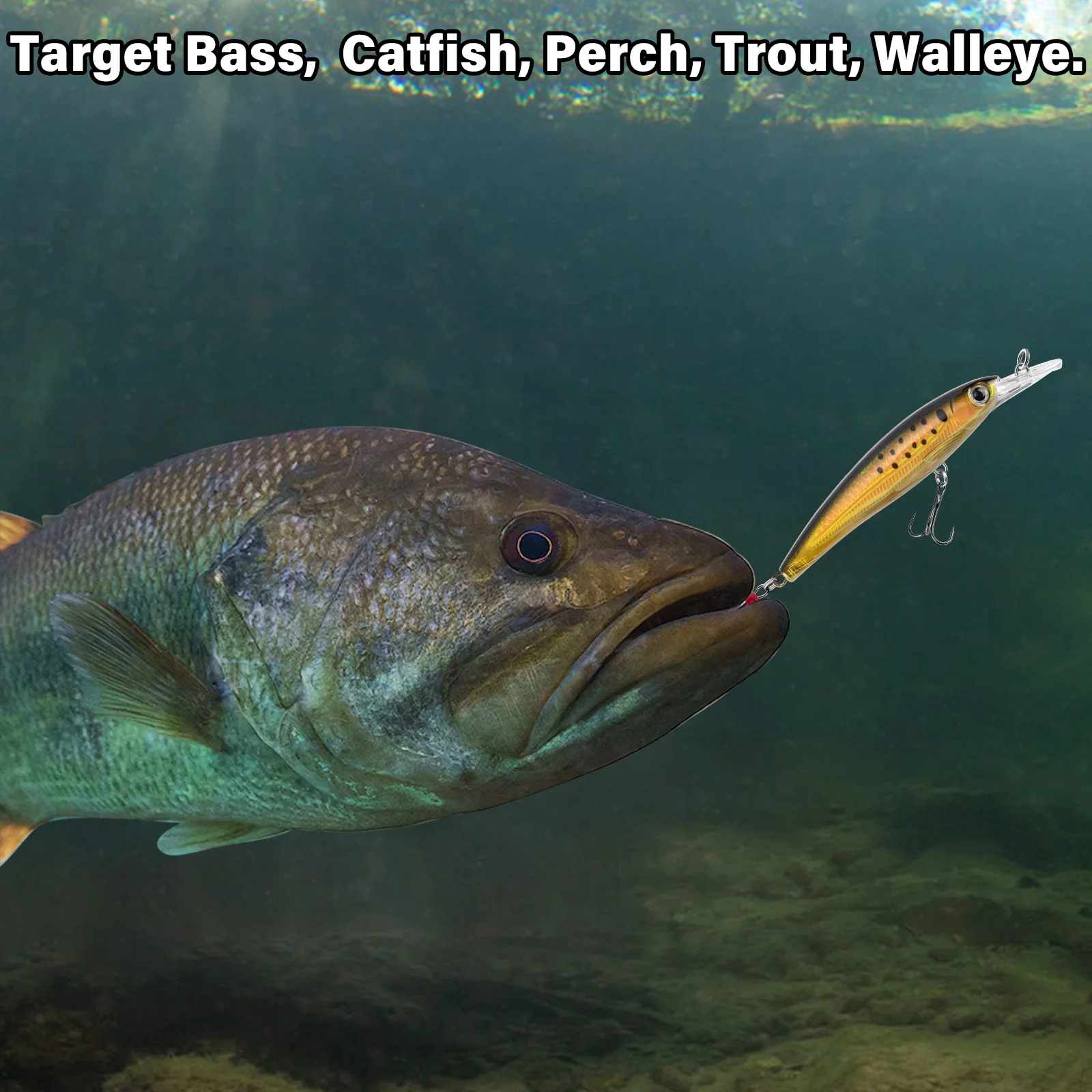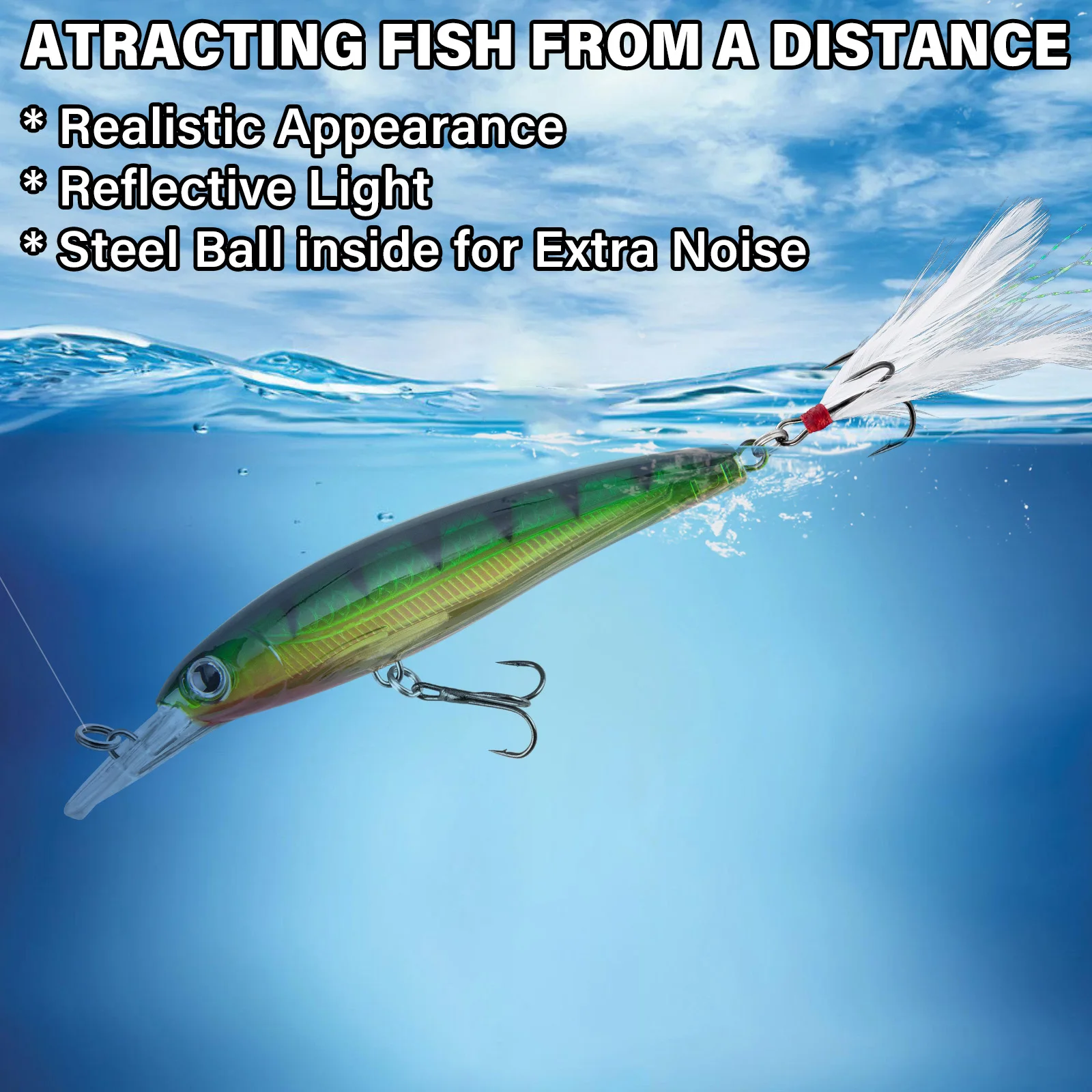 Este señuelo Minnow, equipado con bolas de sonajero de acero en el interior para crear ruido cuando se arrastra en el agua, lo que lo hace aún más atractivo para los peces y les incite a atacar silvestreamente.