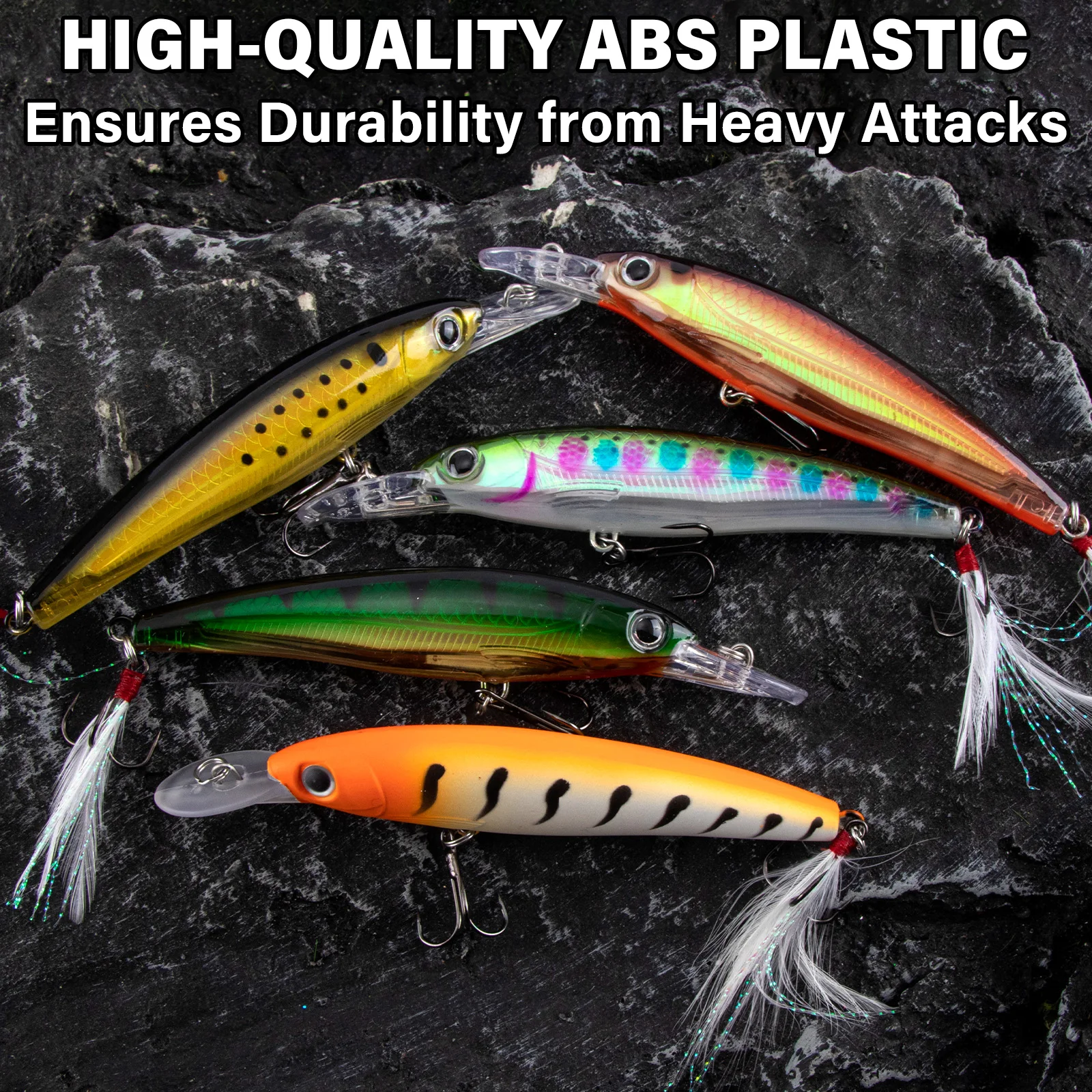 Elaborados con ABS de alta calidad, estos cebos garantizan durabilidad y flexibilidad incluso en entornos hostiles, y los anzuelos triples de acero con alto contenido de carbono cuentan con una nitidez y un poder de penetración excepcionales, evitando eficazmente que los peces se escapen.
