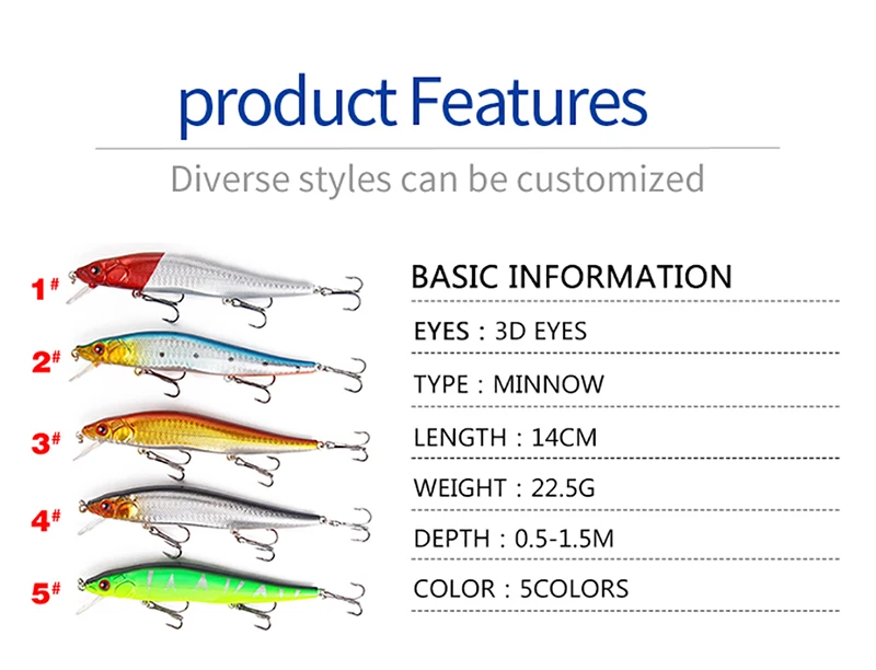 1 señuelo de pesca Minnow 14CM 23G buceo 0,5-1.5M cebo de pesca Pesca de plástico