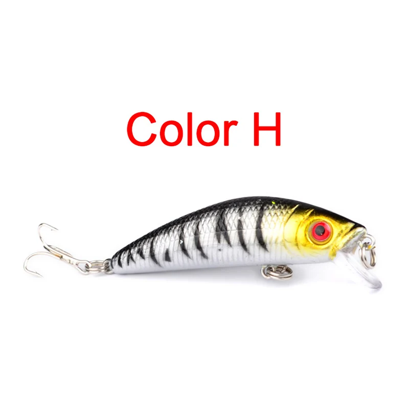 Tipo de producto: cebo duro de pesca MinnowColor del producto: 8 coloresLongitud del producto: 58mmPeso del producto: 7,9GMaterial del producto: cebo duro ABSAnzuelo: tres anzuelos de púas de acero con alto contenido de carbonoAguas adecuadas: todas las aguasCaracterísticas:Estilo de natación realista, acción de natación de varias velocidades. Y atrae a los peces para que muerdan.Ojos 3D realistas y detalles corporales realistas como peces reales hacen que se vea natural como cebo vivo.Adecuado para agua de mar y agua dulce, cebo para pescadores.Anillo doble más fuerte: fortalece el anillo doble y aumenta la resistencia a la tracción.Maravillosos accesorios de pesca para entusiastas de la pesca. Ideal para pesca de trucha, raya, mero, lanza, almizcle, calamar, calamar, etc.