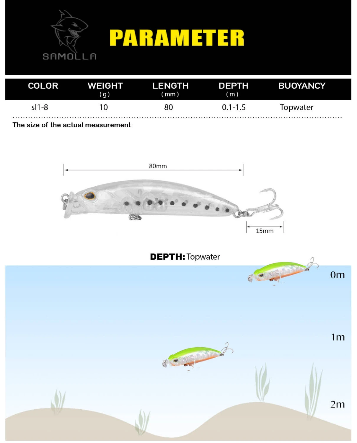 Señuelo De Pesca Minnow De 8cm /10g, cebo duro De lubina Mino, cebo De pescado falso Isca, artísticos artificiales De Pesca De agua salada