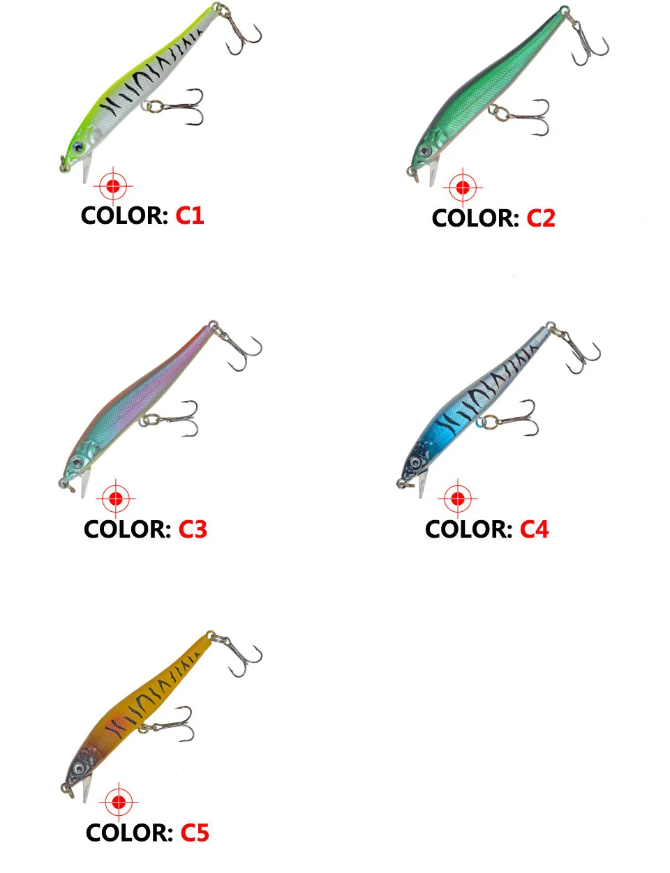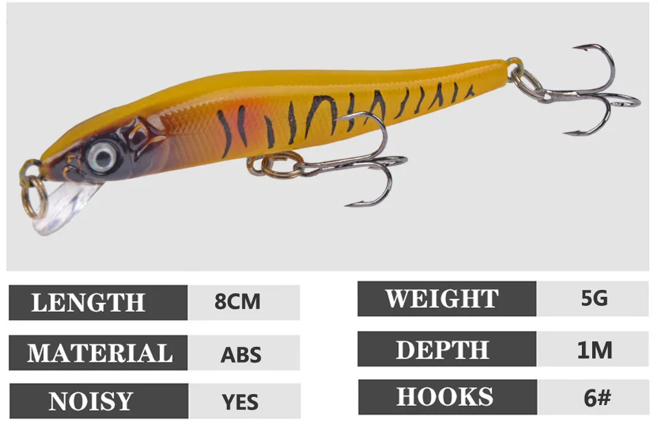 Señuelo de pesca Minnow, cebo duro Artificial flotante, Wobblers, Crankbait, Lucio, anzuelos triples, aparejos, 8cm, 5g