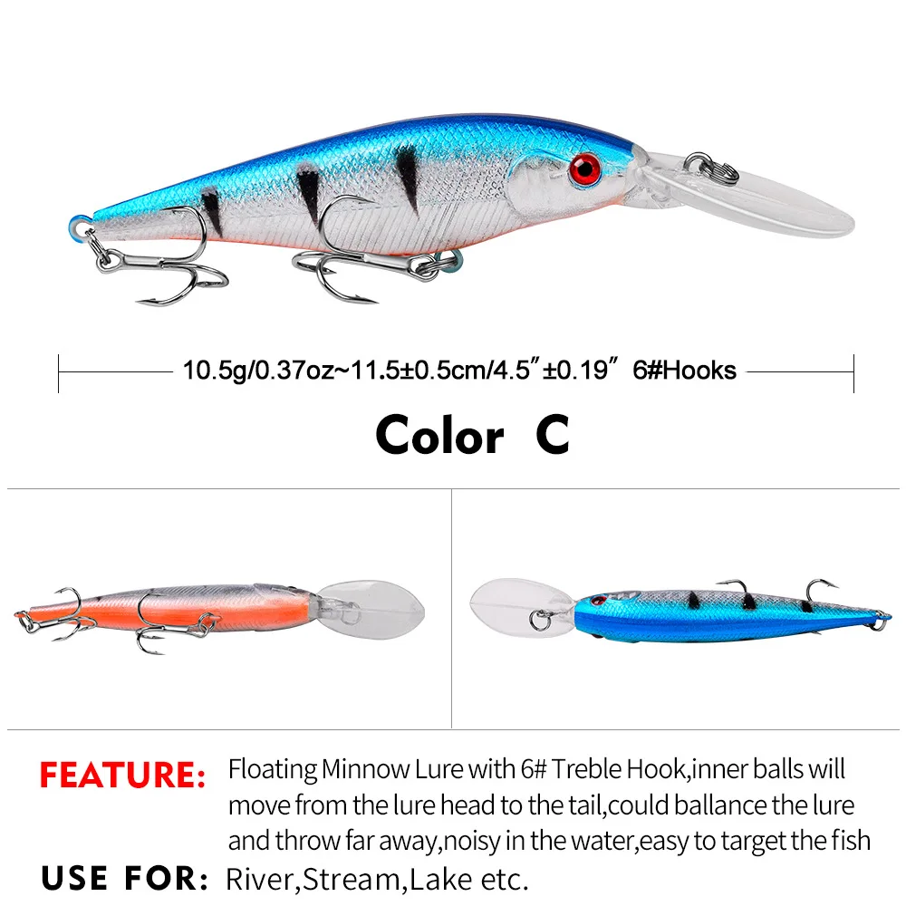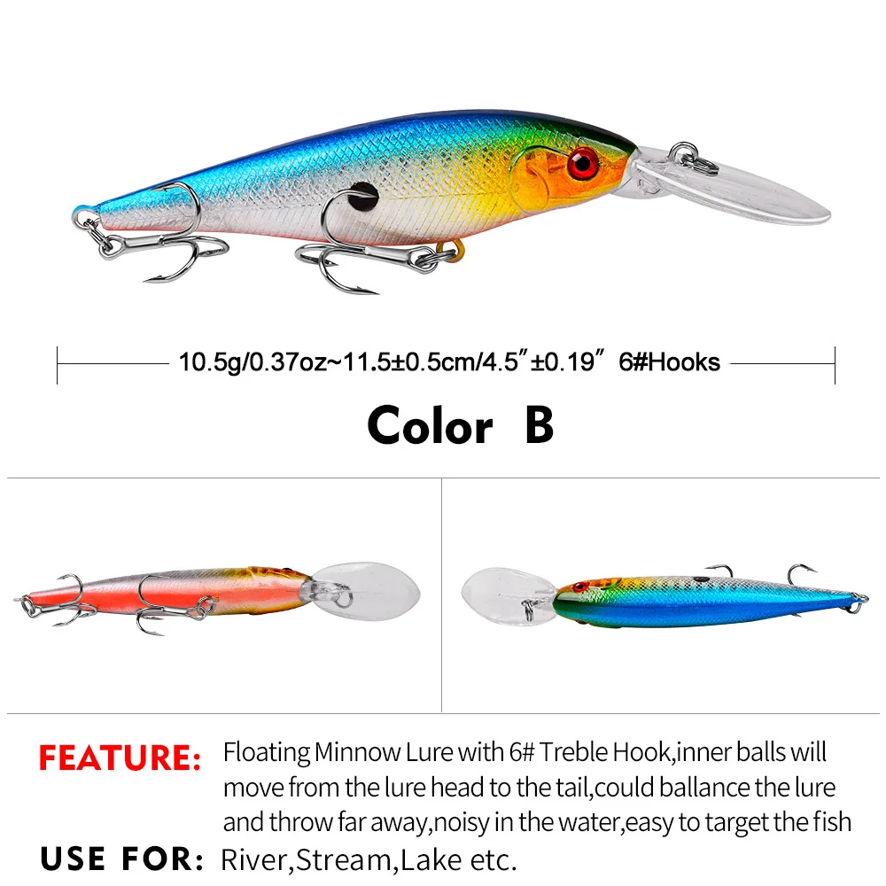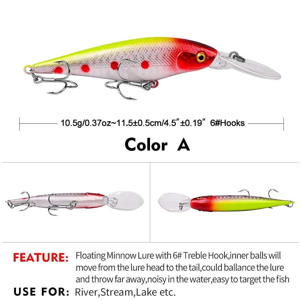 1. Colores brillantes: colores brillantes y crankbait realista con acción de natación de peces de cebo realista para atraer peces que se pueden usar tanto en agua salada como en agua dulce.