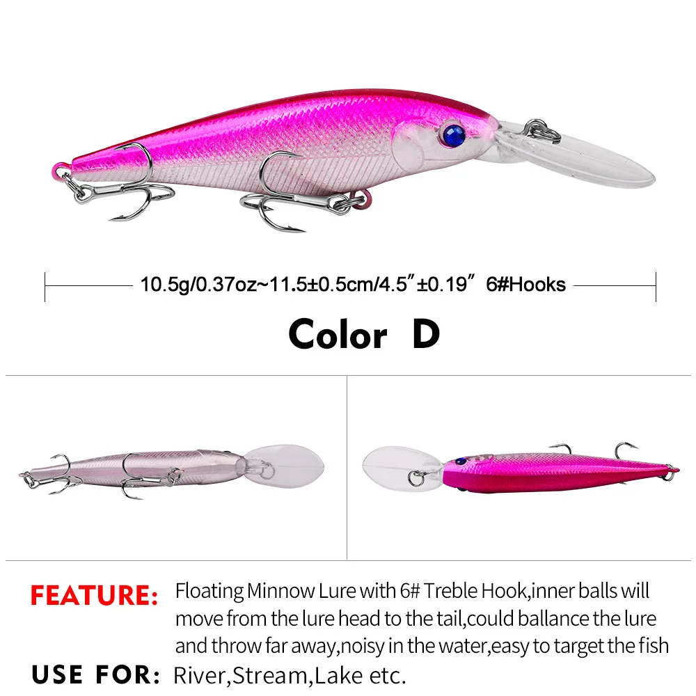 3. Todos los estilos tienen un pez de cristal brillante que atrae la reflexión, una acción de dardos receptiva, material ABS duradero y nuevos anzuelos más afilados y más fuertes. ¿Ojos vívidos y patrones de escala realistas? Crea una acción de natación realista para atraer la atención de los depredadores.