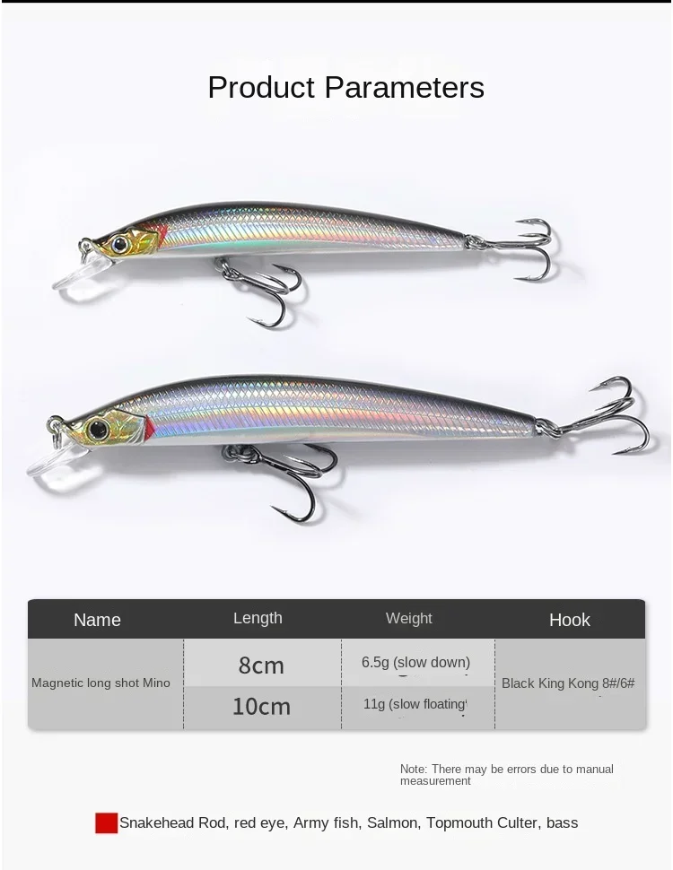 Señuelo de pesca de Minnow, cebo de fundición larga de acero magnético de 8cm/10cm, cebos de Megabass de hundimiento lento, Wobbler flotante, perca de Lucio, 2 piezas