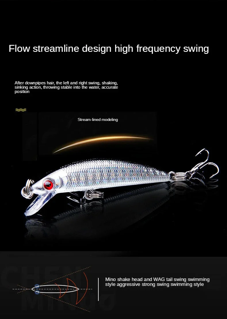 Señuelo de pesca Minnow, cebo de pececillo fácil, Wobbler, superficie Popper, hundimiento lento, anzuelos de 6cm y 4g, aparejos de pesca