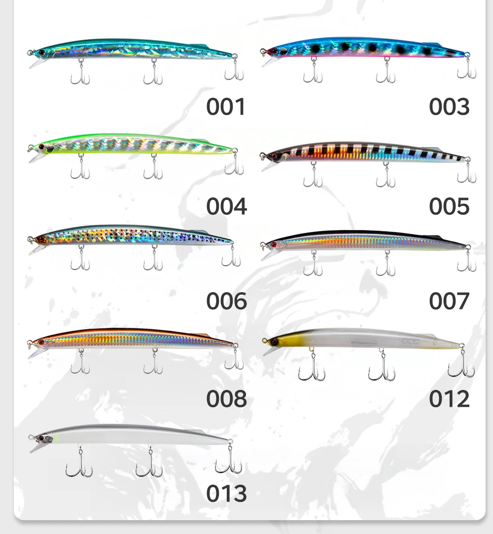 En este lote de productos, hemos reemplazado los anzuelos 3 veces más gruesos, el peso ha cambiado ligeramente (37,5 g-38 g, la medición manual tendrá un error de 1-2 g).No se preocupe, y los anzuelos penetran son afilados, por lo tanto, después de que el pez muerde el anzuelo, no es fácil de romper.