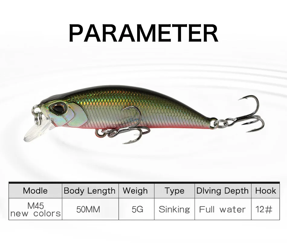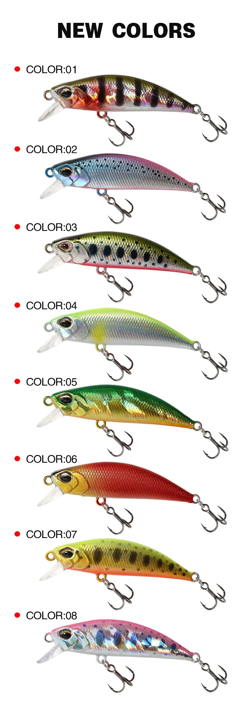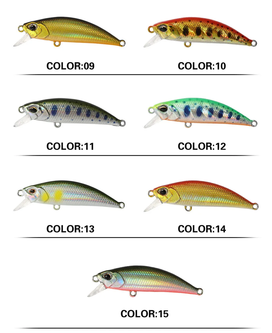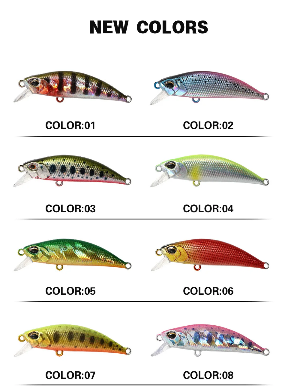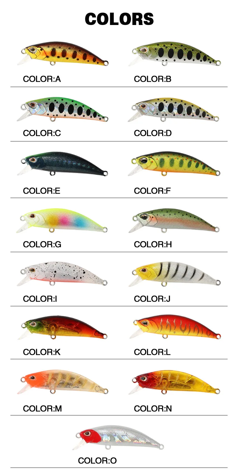 Señuelo de pesca Minnow, ojos 3D, 50mm, 5g, cebo duro de plástico, señuelos artificiales Wobbler Crankbait, aparejos de pesca de lubina de mar de invierno, 1 ud.