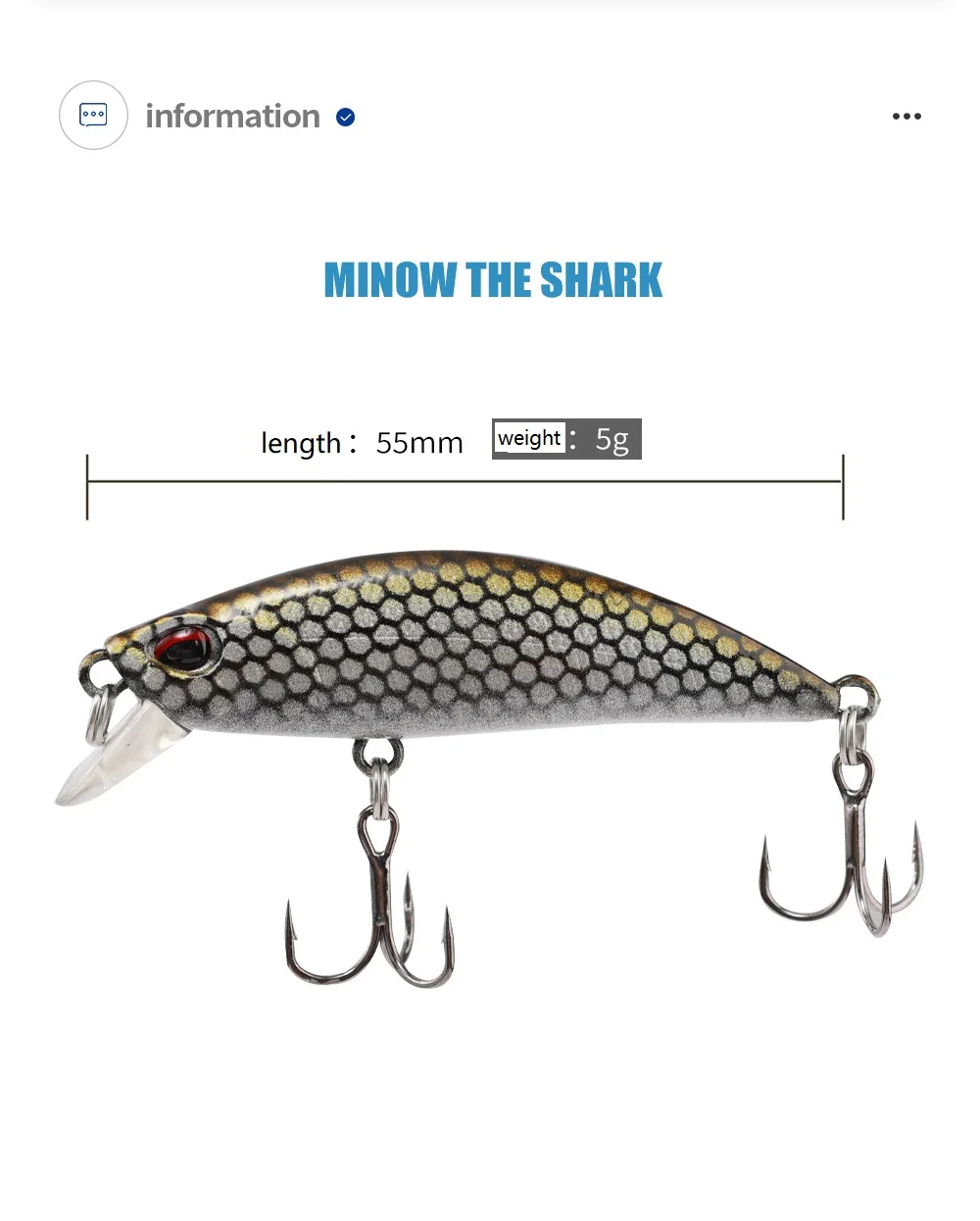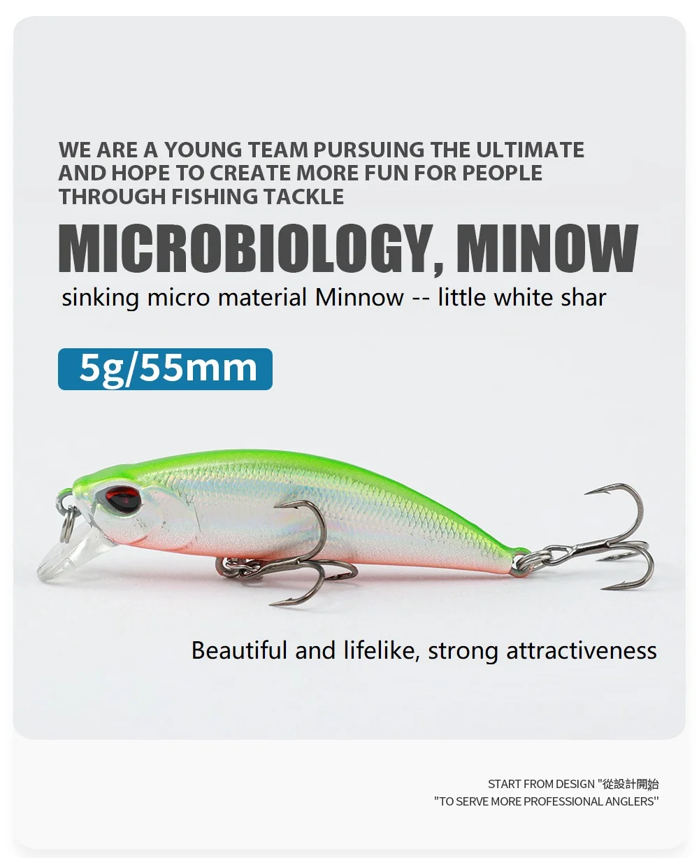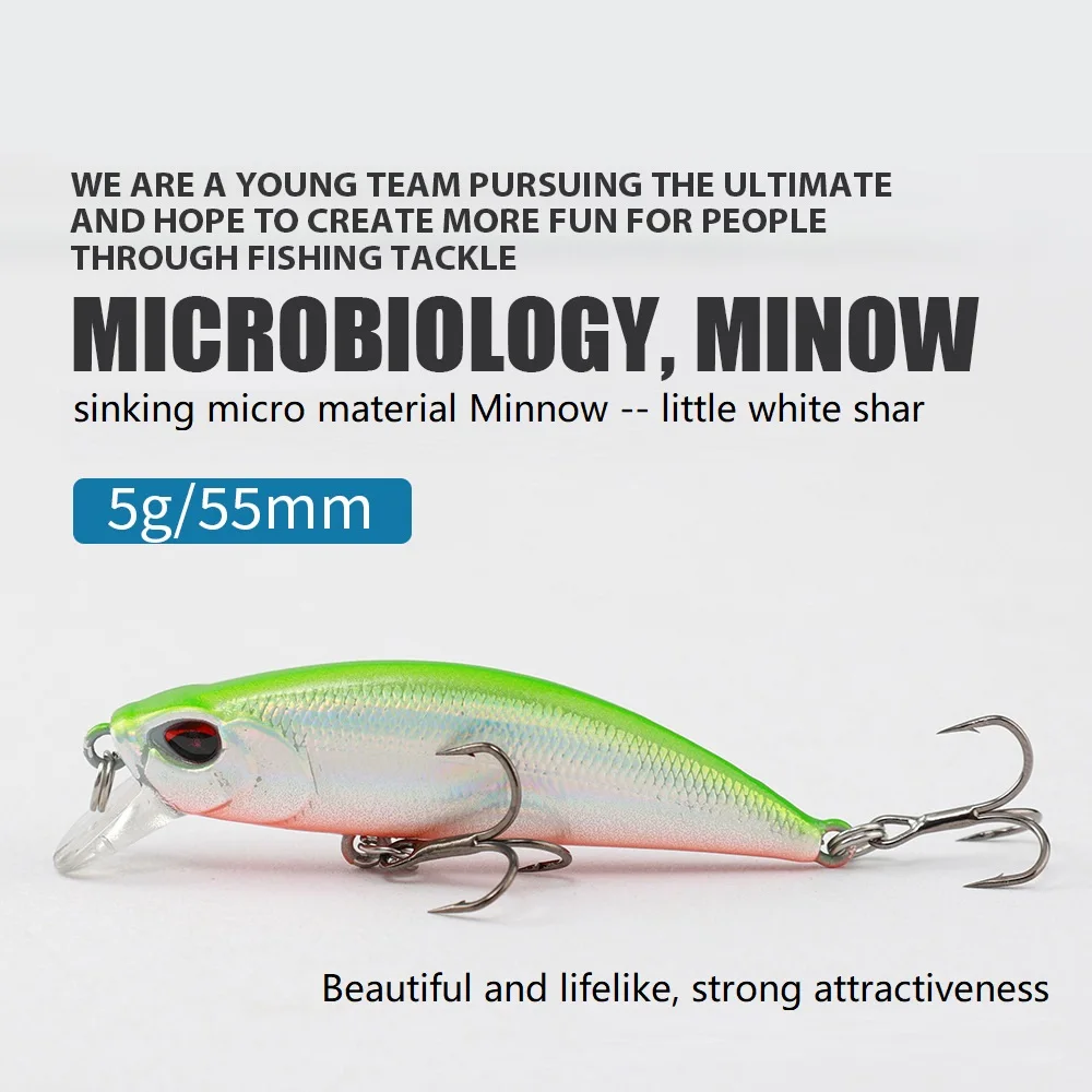 Señuelo de Pesca de Minnow que se hunde, cebo duro de tiburón blanco pequeño con anzuelo triple, plantilla Wobbler, aparejos de Pesca de lubina, 55mm/5g, 1 piezas