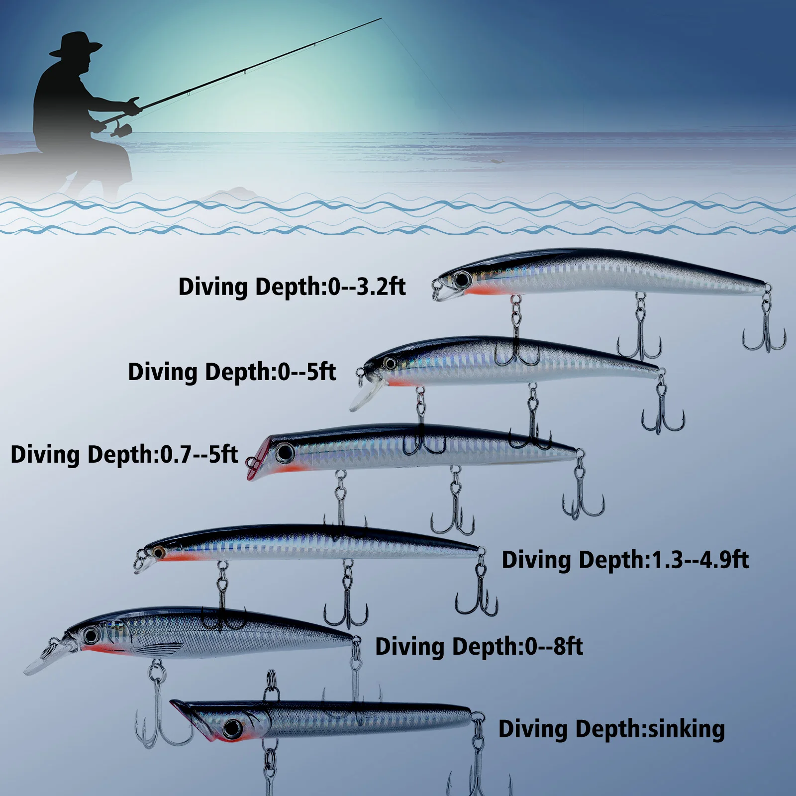 6 señuelos de diferentes estilos para diferentes condiciones. Todos ellos son de 5 "o más.