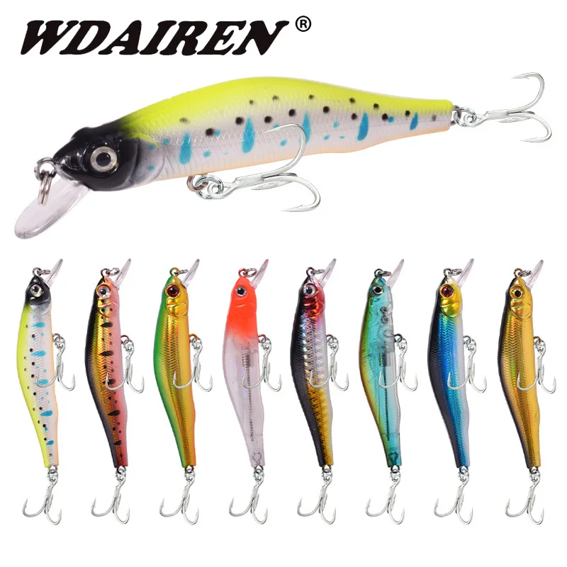 1 Uds. Señuelo de pesca Minnow con suspensión hundida 9cm 9g con anzuelos fuertes Wobblers aparejos cebo Artificial duro de plástico para Lucio bajo