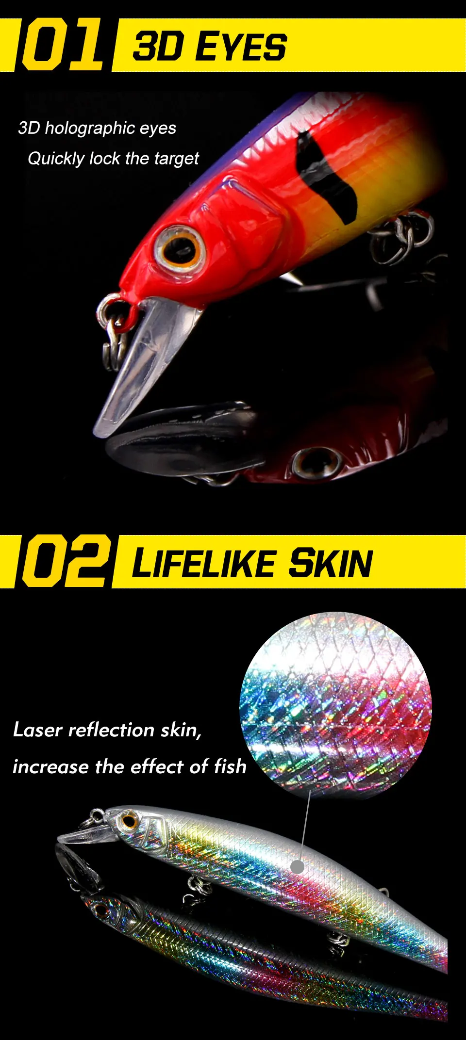 3. Simulación de piel de pez (láser): el diseño de la piel de pez de simulación la hace más atractiva para los peces grandes.