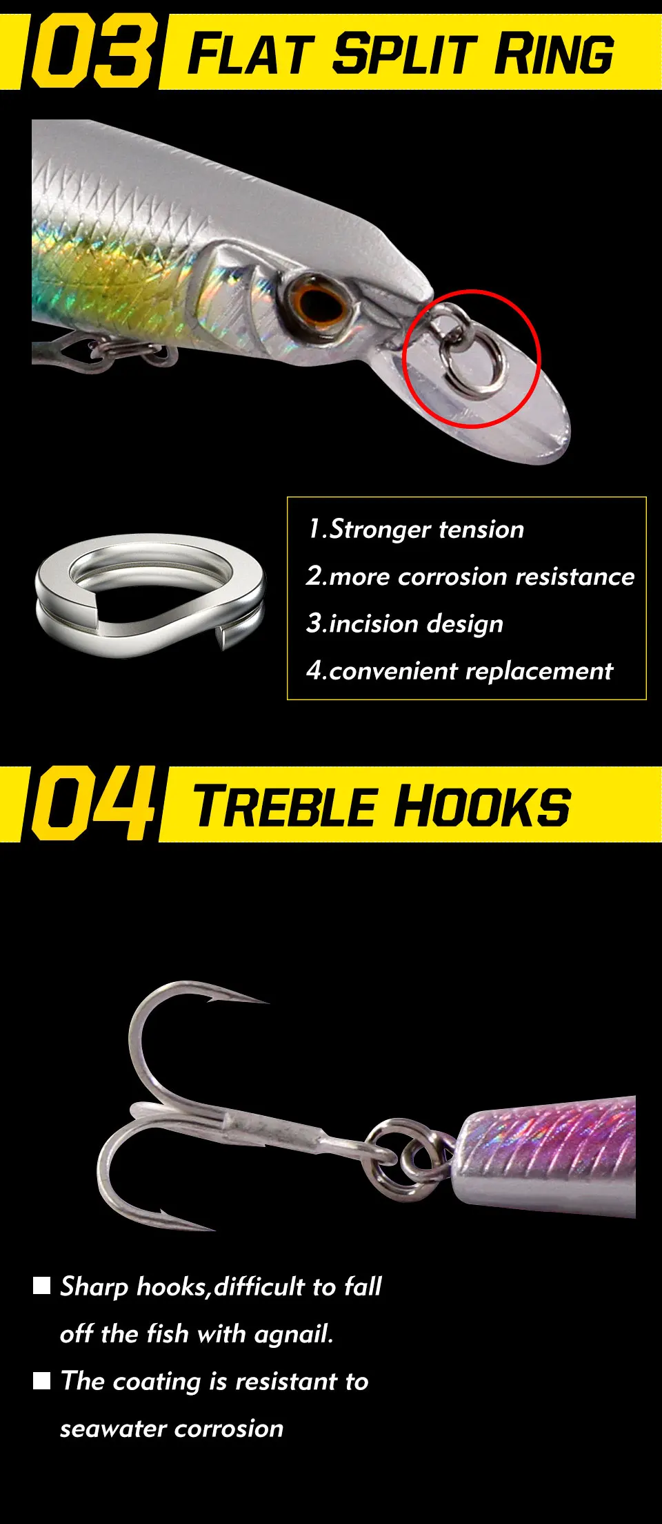 2. Ganchos Mustad: Equipado con 3 Ganchos Mustad DE LA piezas. Anticorrosión, potencia más fuerte, duradero, agua de mar de agua dulce universal.