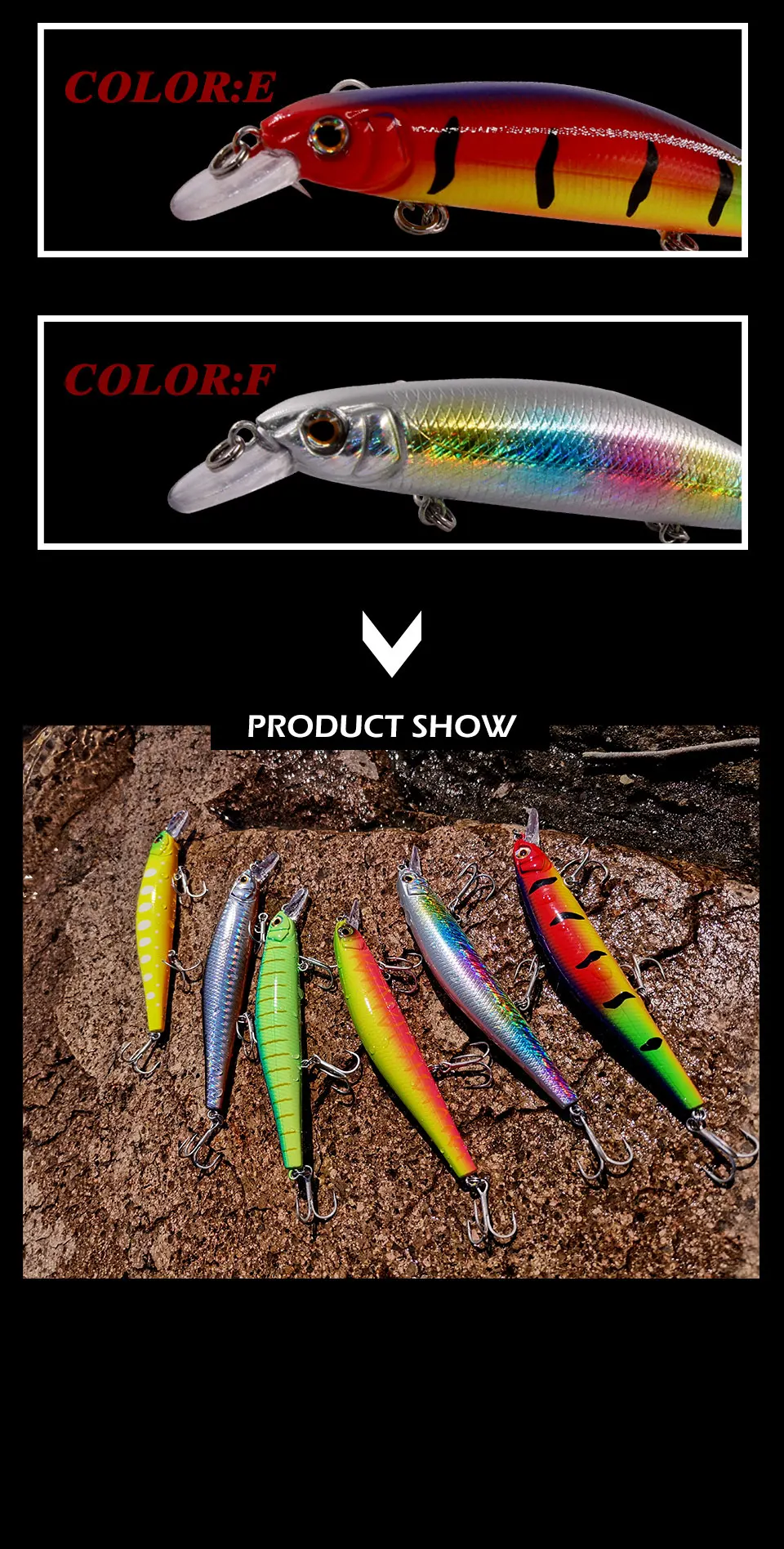 6. Embalaje del producto: Cada cebo se embala en una bonita caja de PVC al por menor.