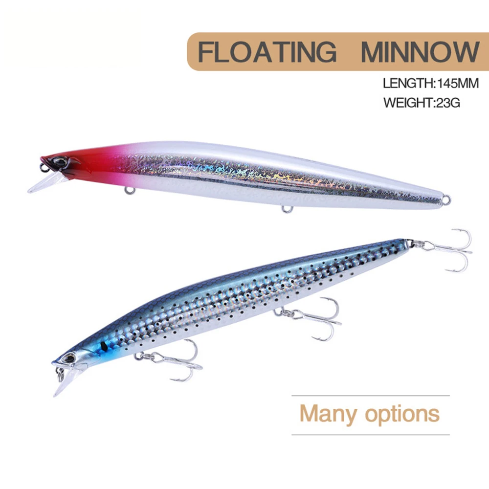 Señuelo de pesca Minnow Wobbler de 14,5 cm y 23g, cebo duro Artificial de transición de peso flotante de fundición larga, cebo de lubina para pesca en el mar