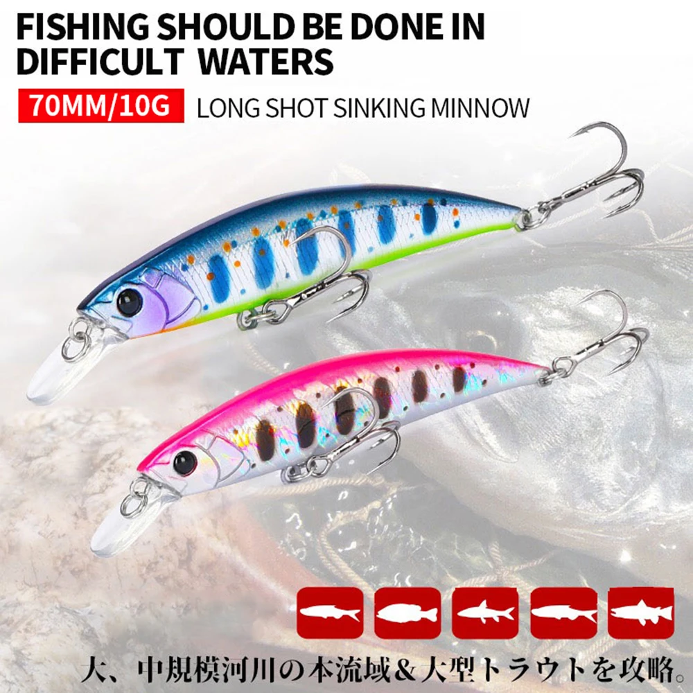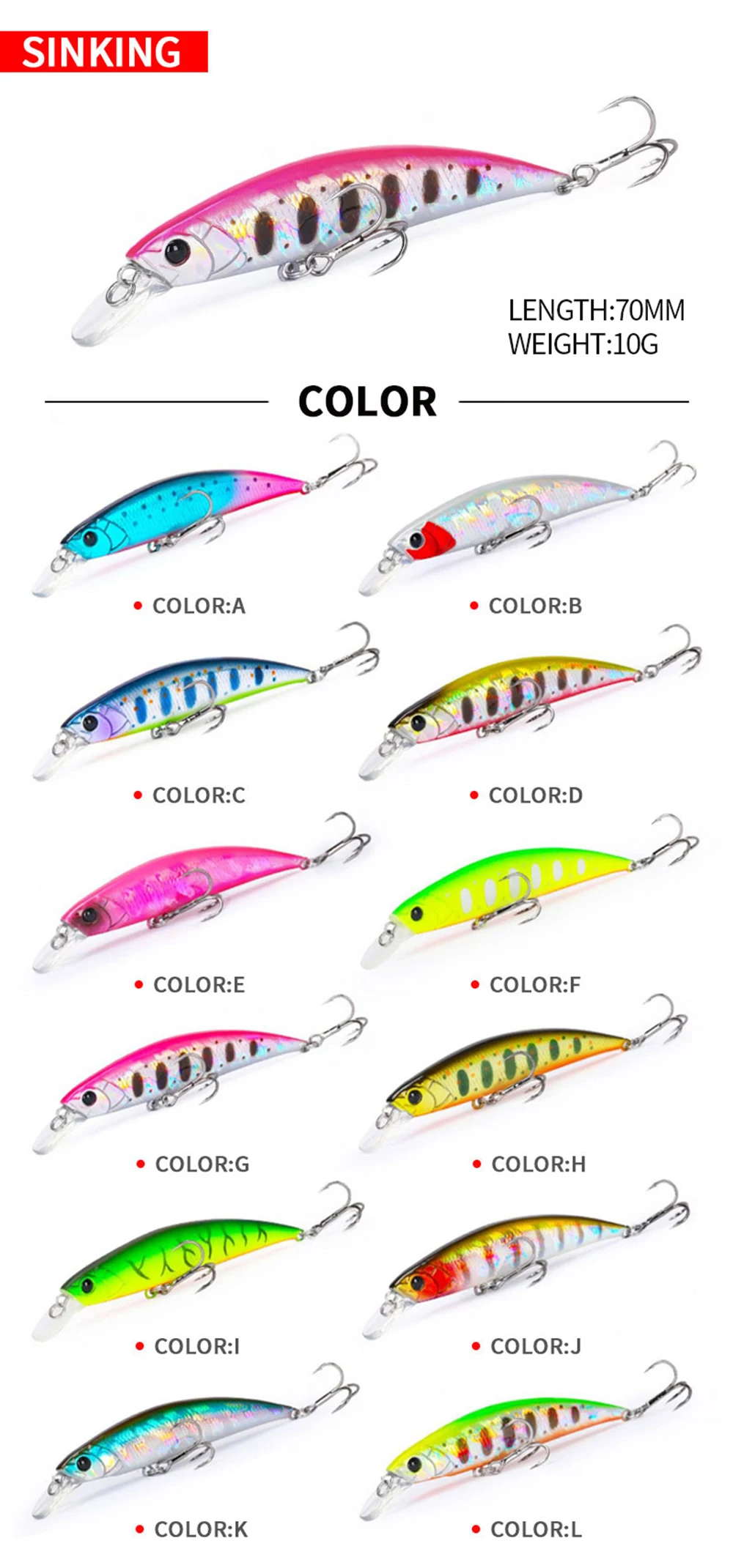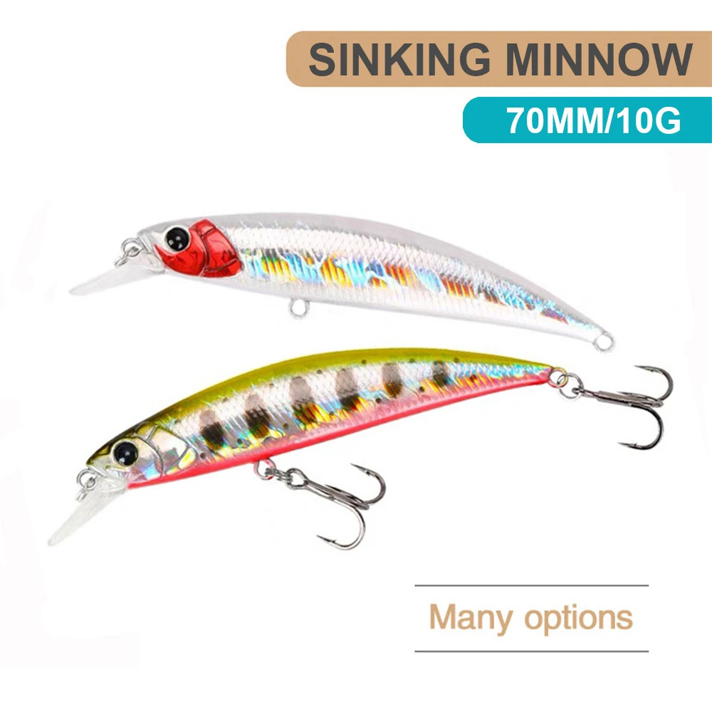 7cm 10g señuelo de pesca Minnow Wobbler fundición larga hundimiento cebo duro Artificial Jerkbait tamaño pequeño cebo de corriente para trucha lubina