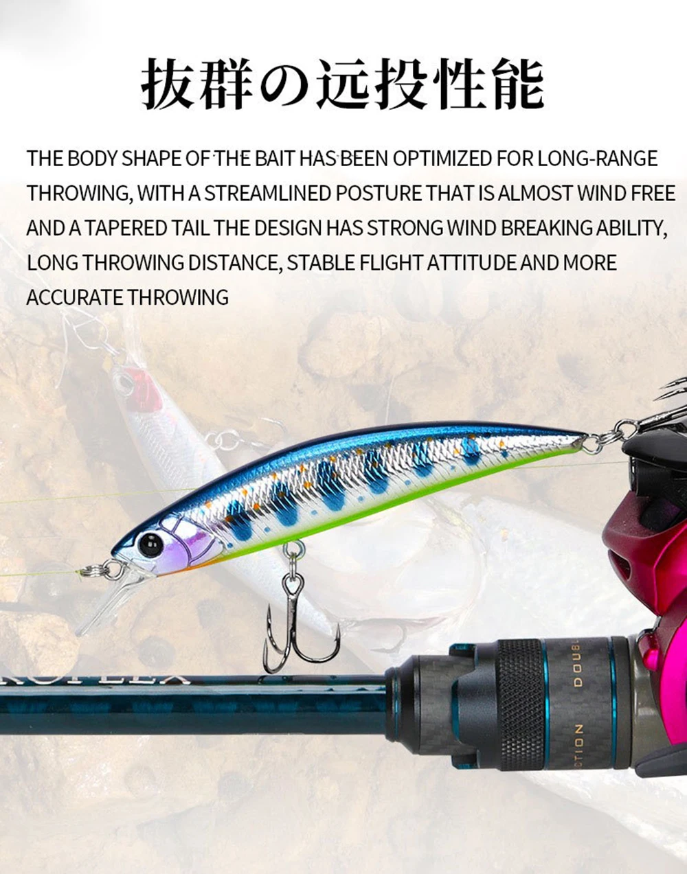 6. Bolas de metal: Bolas de acero inoxidable en el interior, para mantener el equilibrio del señuelo de pesca, para la mayor distancia de lanzamiento.