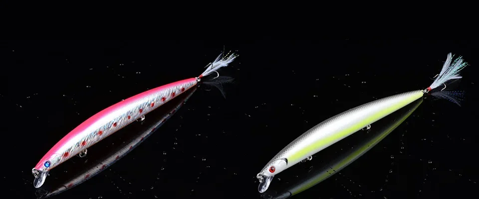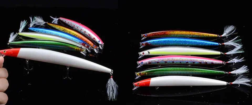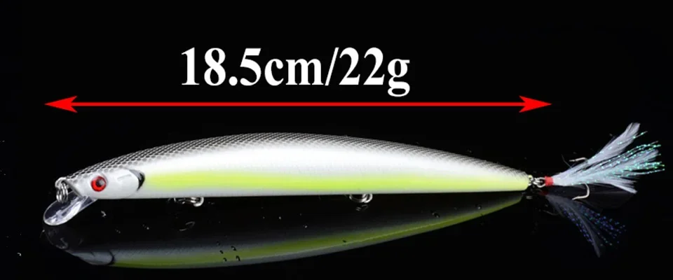 1Pcs 22g 18.5cm Fishing Lure Minnow Wobblers Hard Bait Feather Hook Fishing Tackle Isca Artificial Bait Crankbait SwimbaitBrand: WDAIREN Length:18.5cm/7.28in Weigth:22g/0.77oz Diving Depth:0.3-0.9m is_customized:yes Type :Minnow feather lure Material:ABS Green plastic Quality hooks:3x Strong feather Hooks Ring:Strong Flat Ring Target Fish:Pale chub,bass,Pikes,Yellowcheck carp,Chinese perch,Topmouth culter Package:1*lure