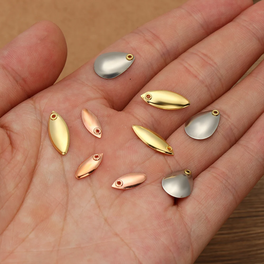 Señuelo de pesca con mosca, 10 piezas, oro, plata, cobre, cuchara, Spinner, aparejos, hoja de sauce, accesorio de bricolaje suave, ruido no daña la línea de lentejuelas