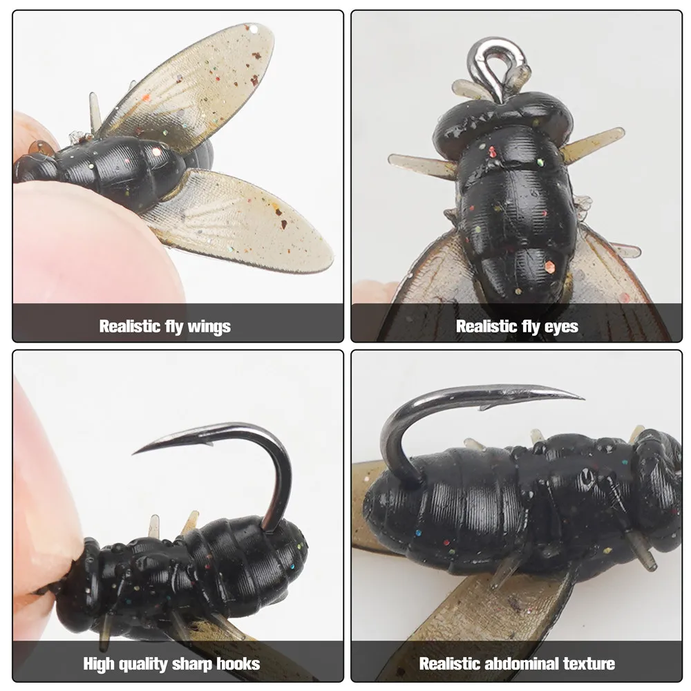 2.Moscas coloridas y realistas atadas a mano.Los señuelos de pesca con mosca aumentan las posibilidades de capturar peces imitando presas submarinas para atraer la atención de los peces.Múltiples combinaciones de colores de moscas son adecuadas para pescar en una variedad de condiciones.