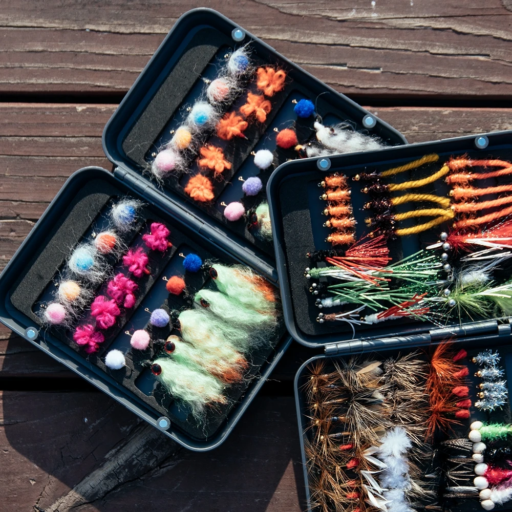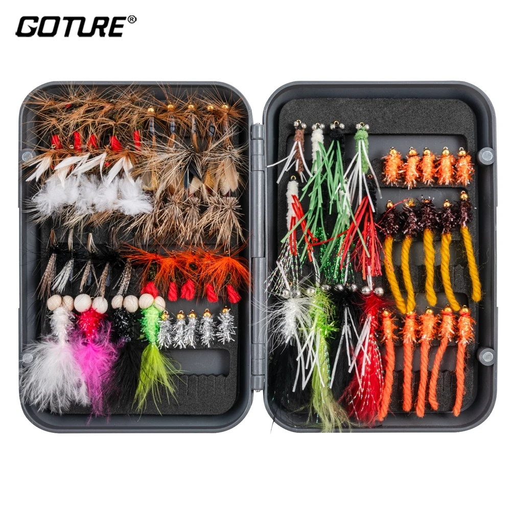 Goture Fly FIshing señuelo 30/40/76 unids/lote Kit de moscas Streamer seco y húmedo moscas ninfa cebo Artificial para truta lubina moscas con caja