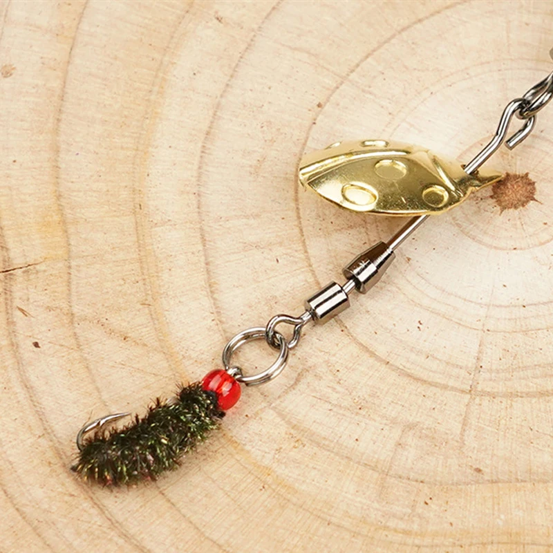 Señuelo de pesca con mosca de trucha, juego de cebos artificiales secos y húmedos con giradores, lanzador de cuchara para trucha, 5 piezas