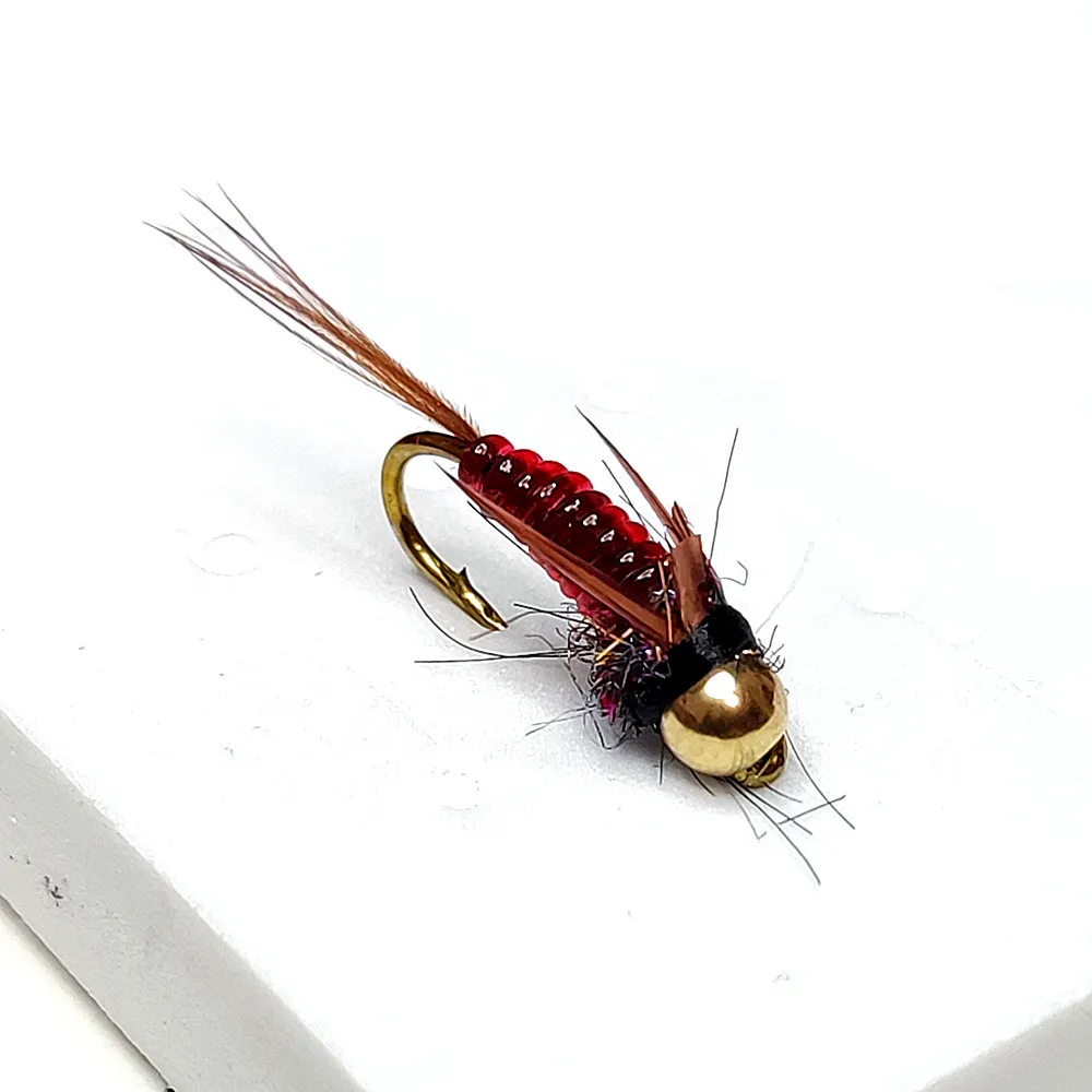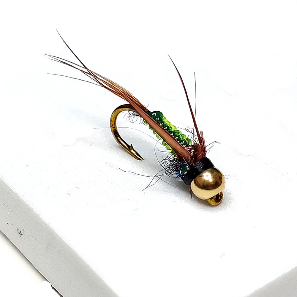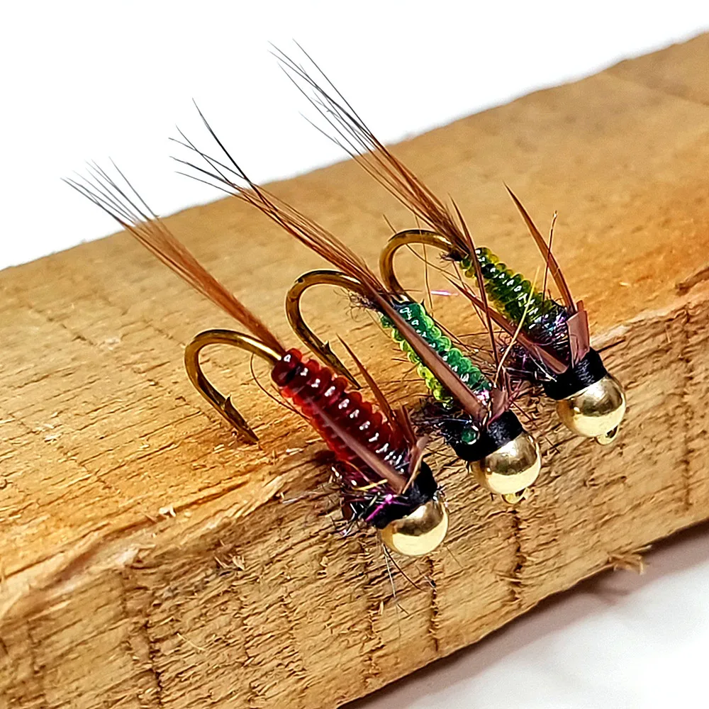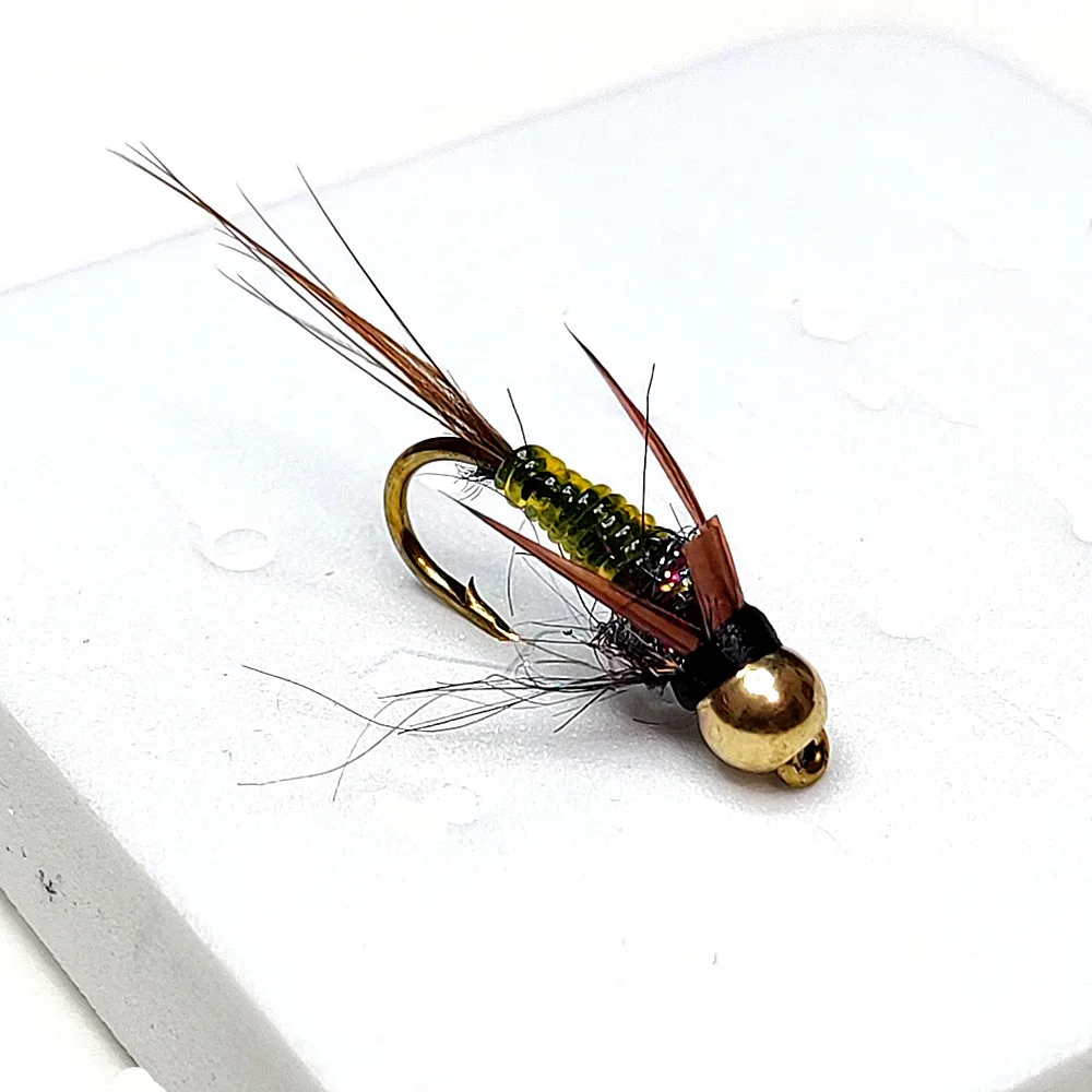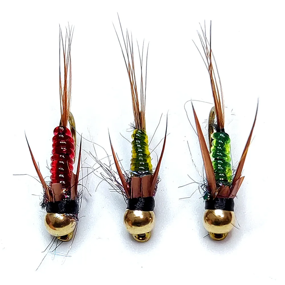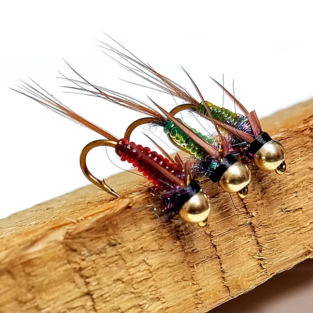 Señuelo de pesca con mosca para Walleye, trucha y lubina, cabeza de cuentas de cobre de latón, ninfa Scud, hundimiento rápido, 15 piezas