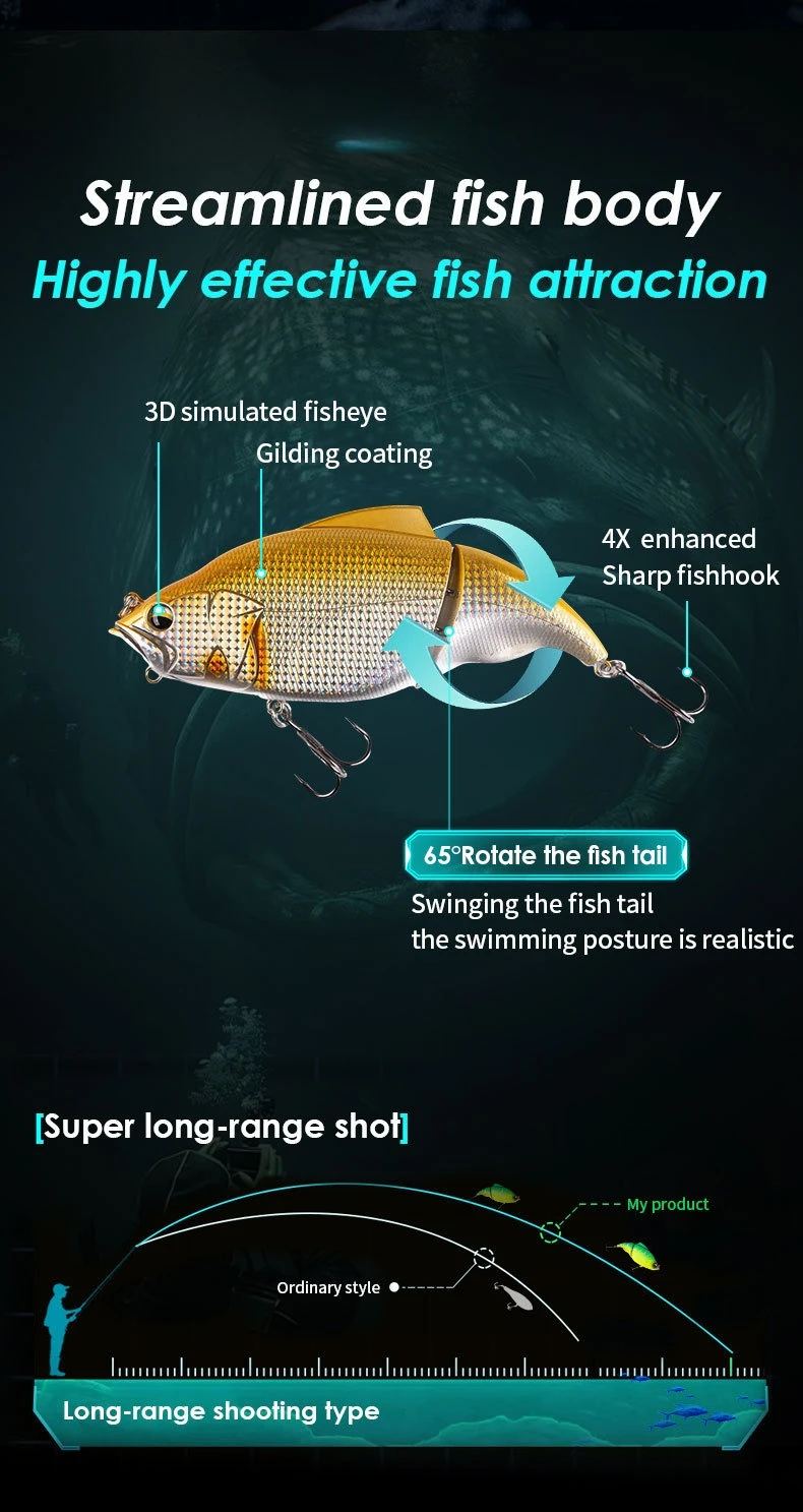 Señuelo de pesca MUKUN, Swimbait flotante, 190mm, 130g, vibración, sin labios, cebos duros, Crankbait, pesca articulada