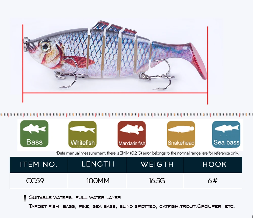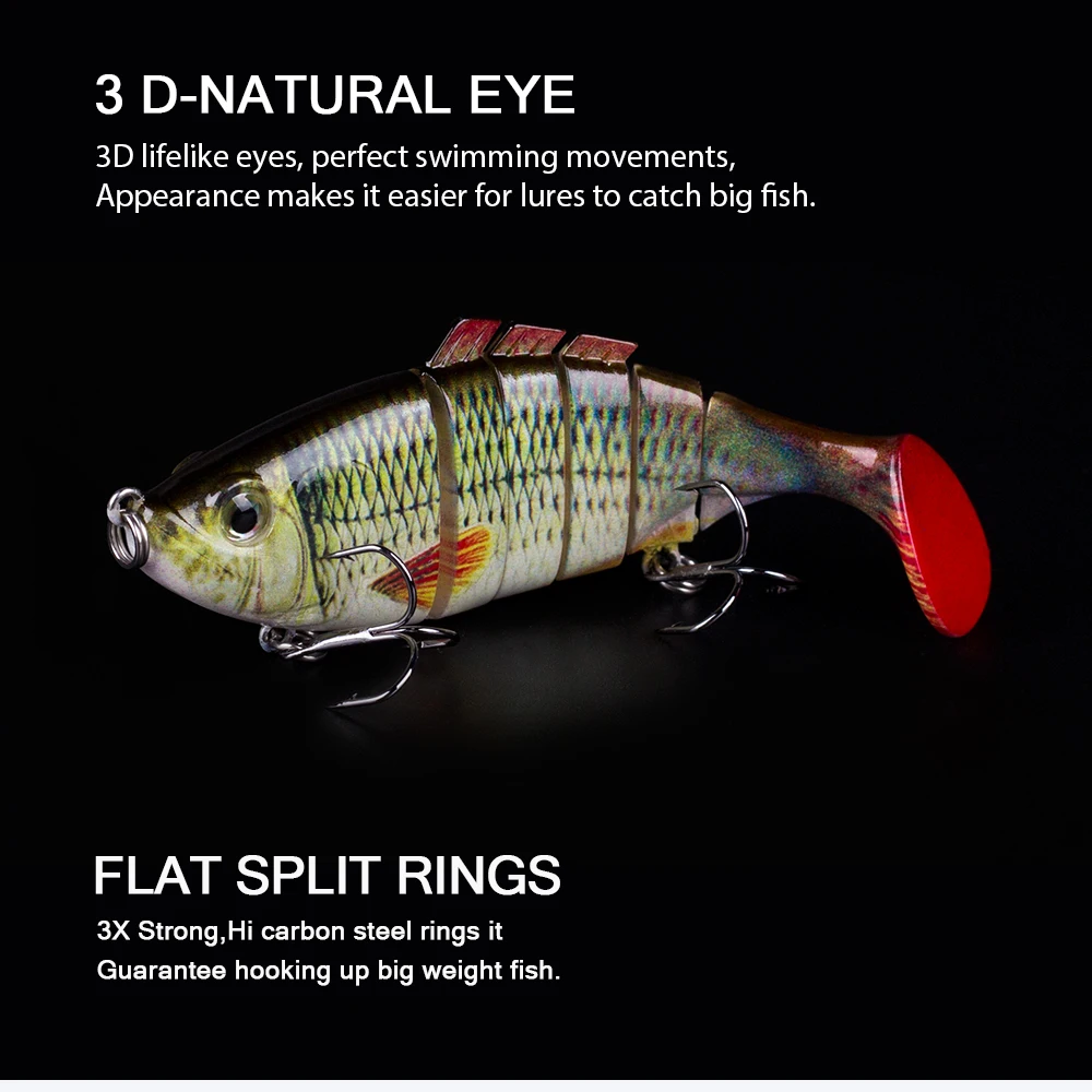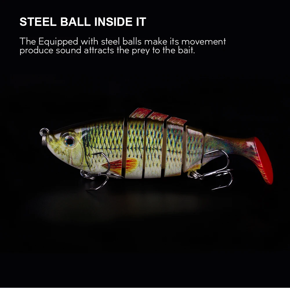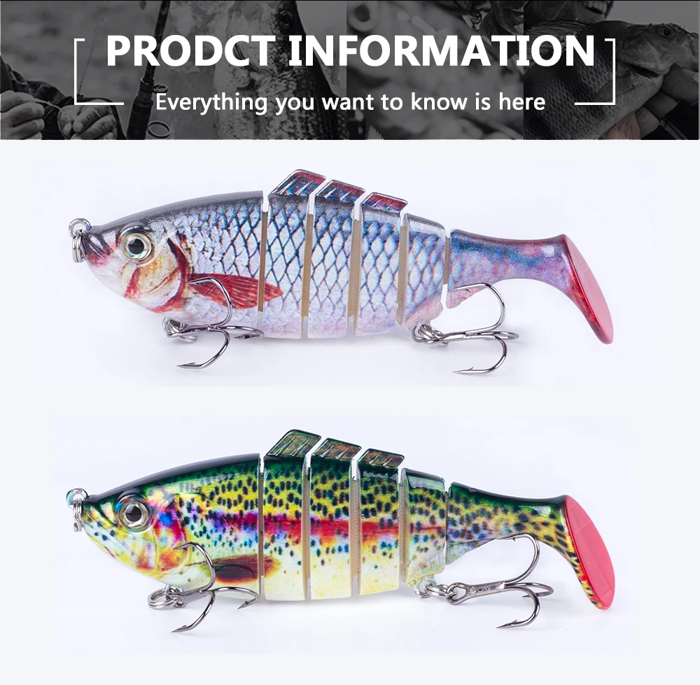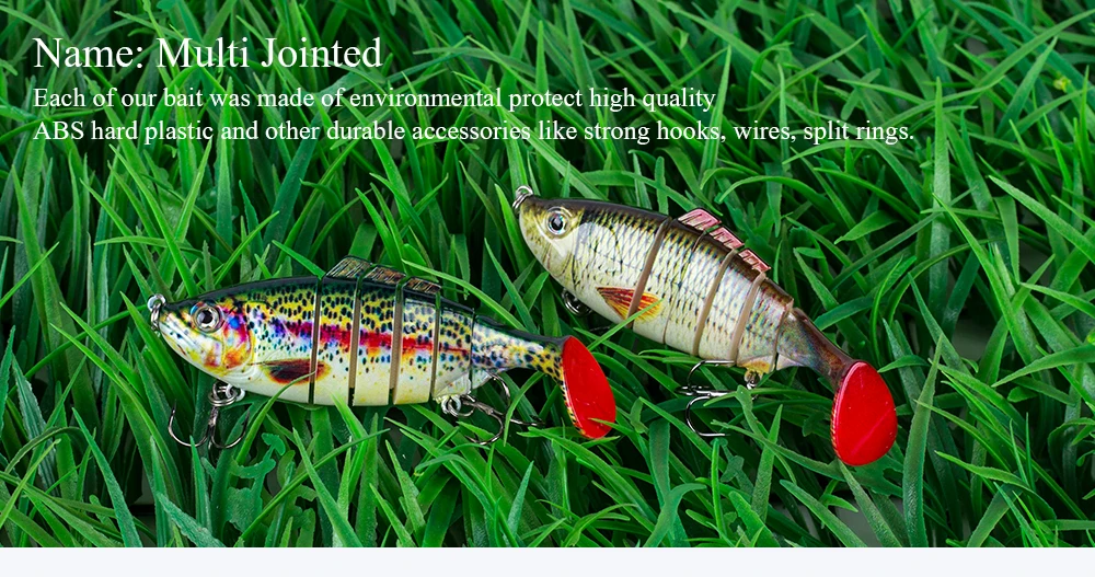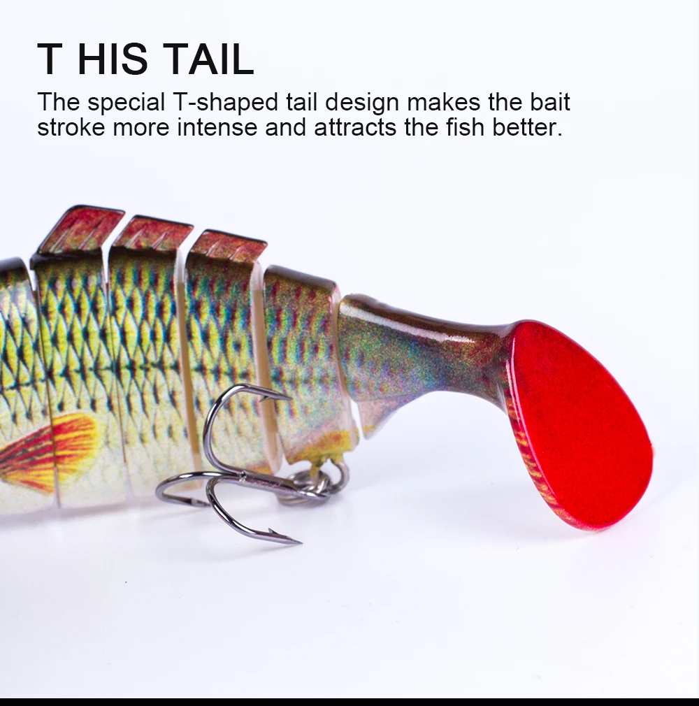 Este cebo duro multiarticulado es uno de los mejores accesorios de su caja de aparejos. Tiene una apariencia realista y puede crear acciones de natación realistas en el agua para provocar que el depredador muerda. Si eres un amante de la pesca, toma este señuelo de pesca y aumentará tus capturas y te brindará más diversión.